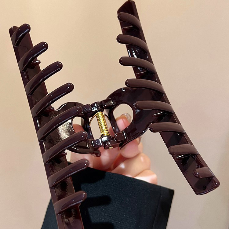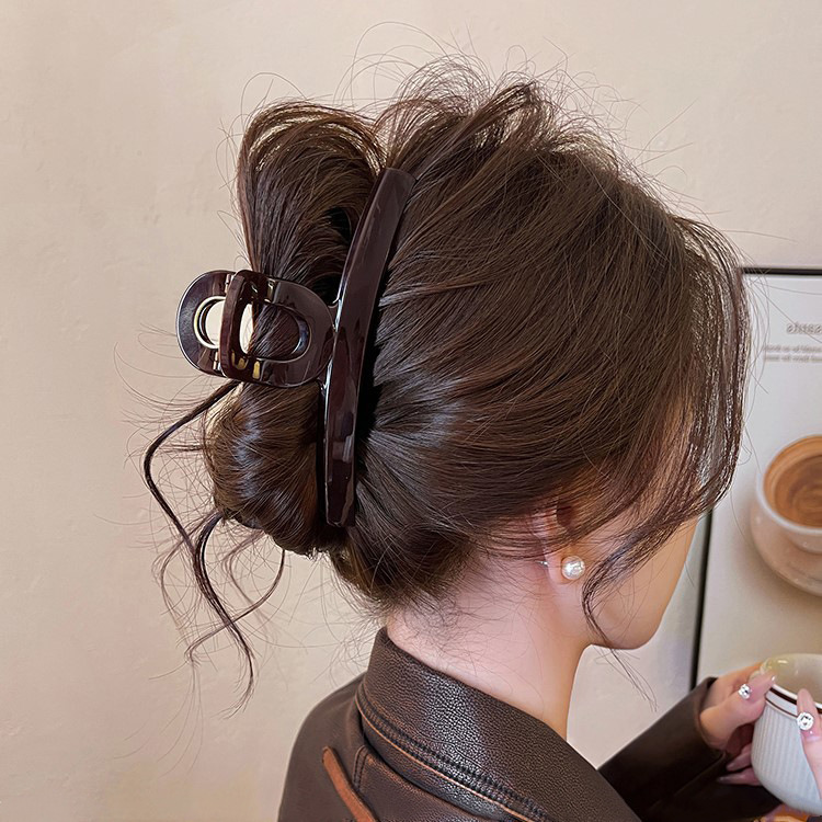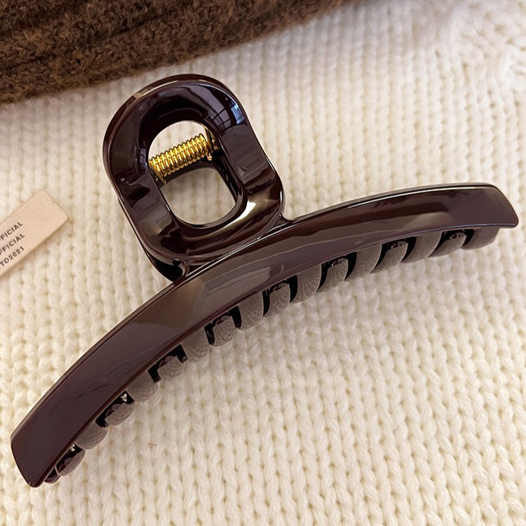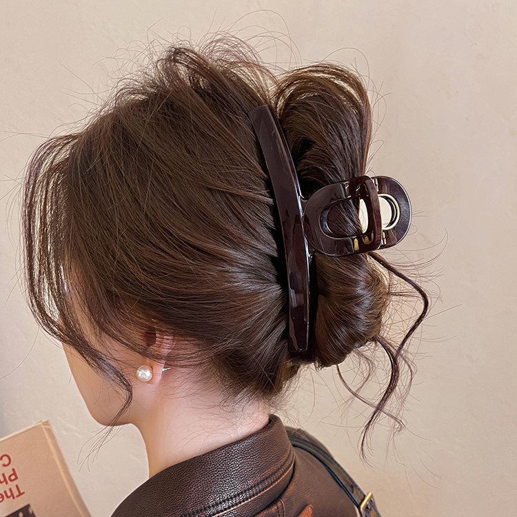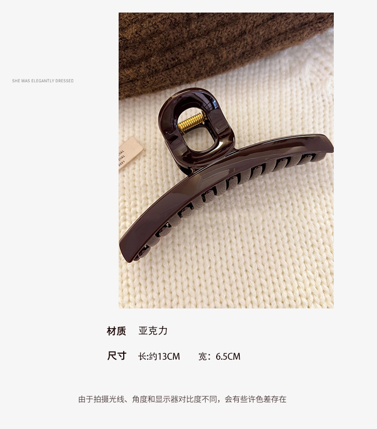 고급 센스 초콜릿 다크 브라운 한 단어 그랩 클립 대형 상어 클립 헤어핀 여성의 머리 뒤 2024 새로운 스타일 클립스토어 가기