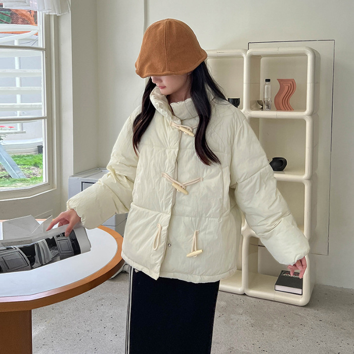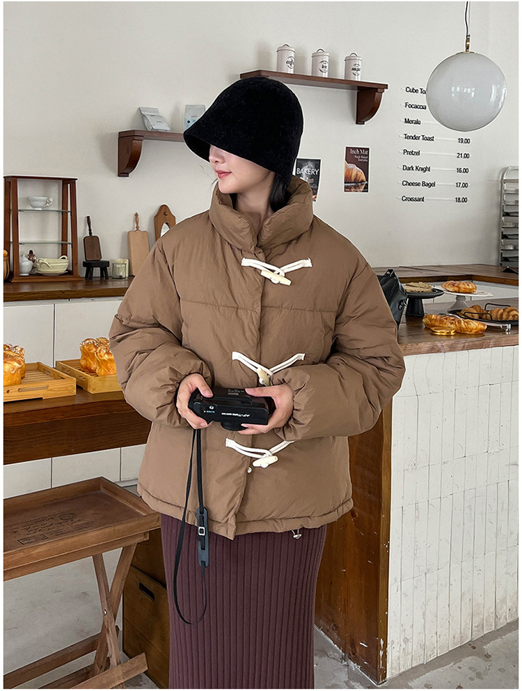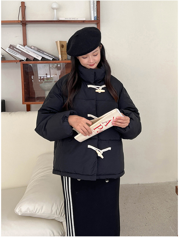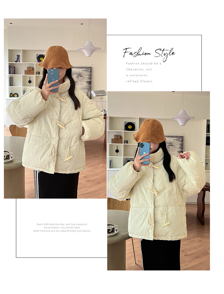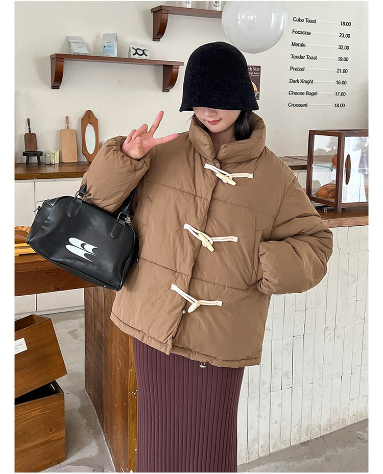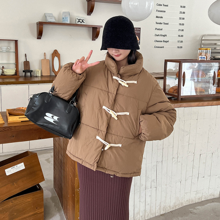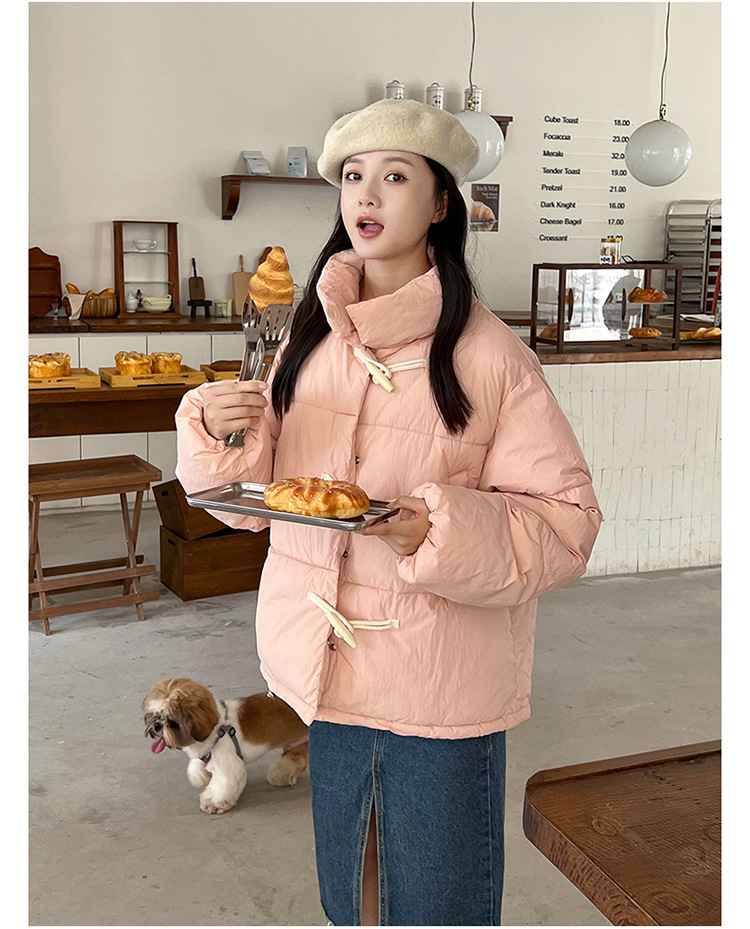 리얼 샷 2024 새로운 다운 코튼 패딩 재킷 여성 한국 스타일 수직 칼라 느슨한 사이버 연예인 코너 버튼 여성용 따뜻한 코튼 패딩 의류스토어 가기