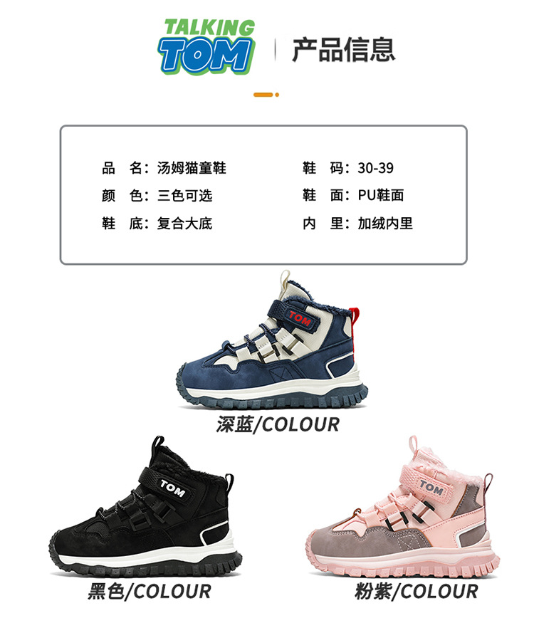 톰 고양이 소년 기모 운동화 새로운 겨울 소녀 따뜻한 코튼 신발 큰 아이 여행 신발 엔티티 도매스토어 가기