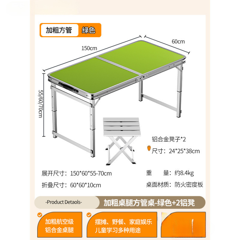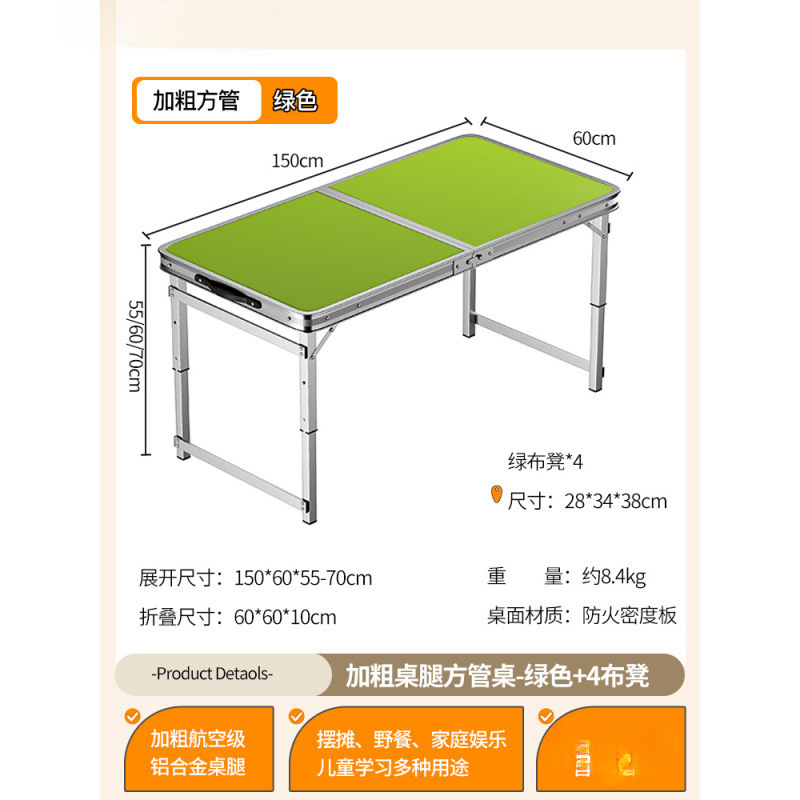 • [업그레이드된 알루미늄 합금 사각 튜브] 150*60cm 녹색 + 알루미늄 스툴 4개