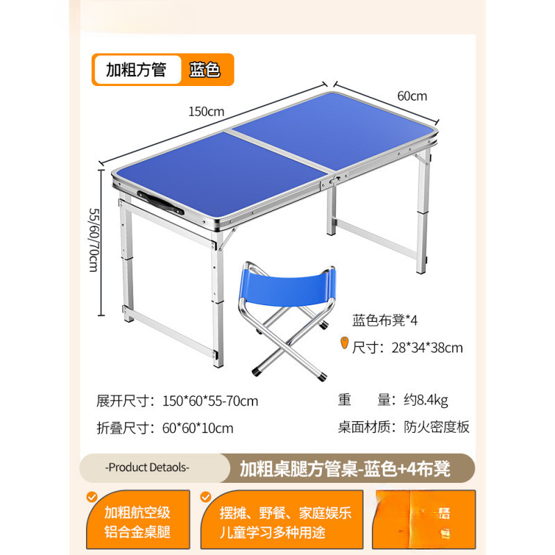 • [업그레이드된 알루미늄 합금 사각 튜브] 150*60cm 블루 + 패브릭 스툴 4개