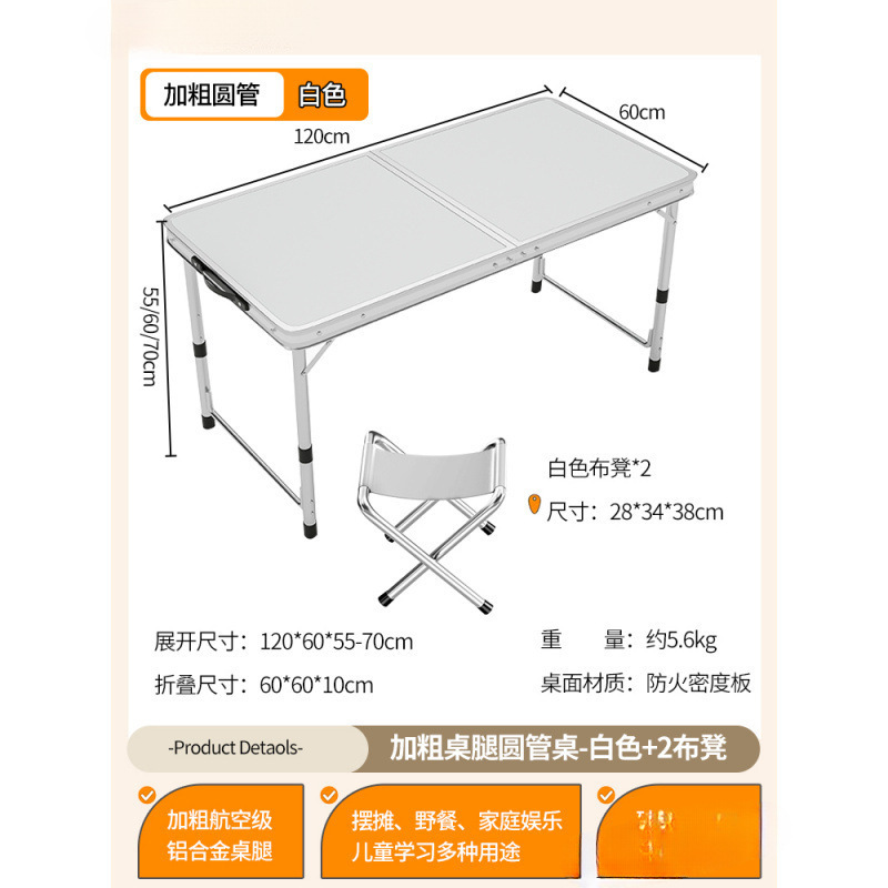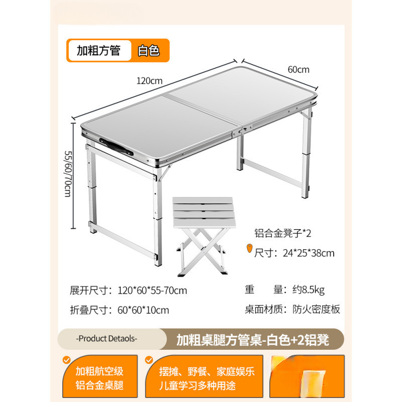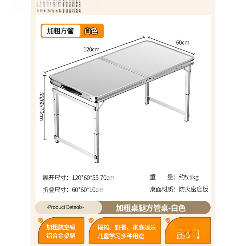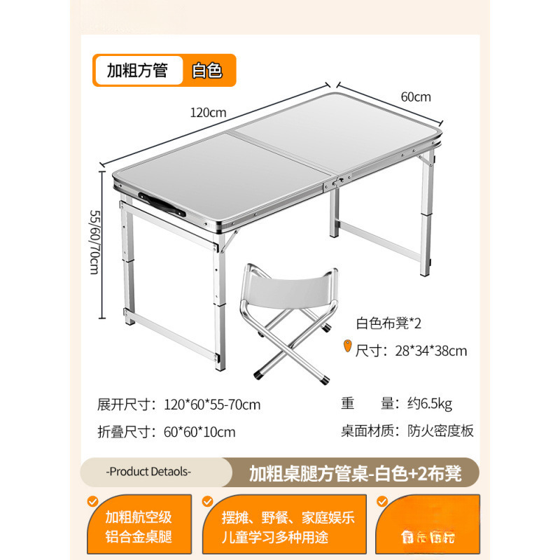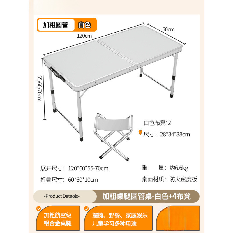 • [업그레이드된 알루미늄 합금 사각 튜브] 120*60cm 흰색 + 알루미늄 스툴 4개
