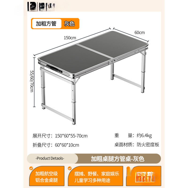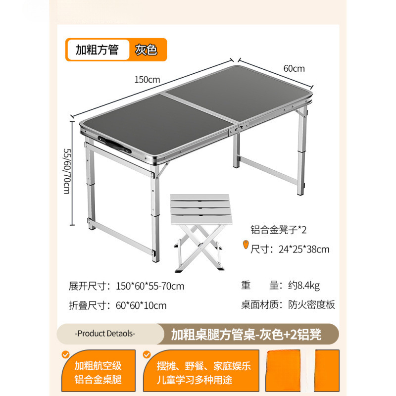 • [업그레이드된 알루미늄 합금 사각 튜브] 150*60cm 회색 + 알루미늄 스툴 4개