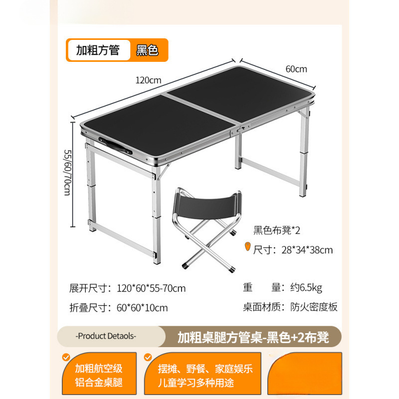 • [업그레이드된 알루미늄 합금 사각 튜브] 120*60cm 블랙 + 알루미늄 스툴 2개
