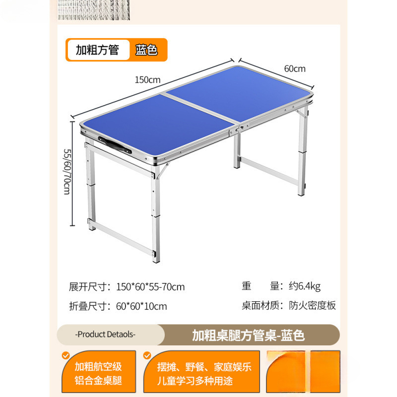 • [업그레이드된 알루미늄 합금 사각 튜브] 120*60cm 블루 + 알루미늄 스툴 4개