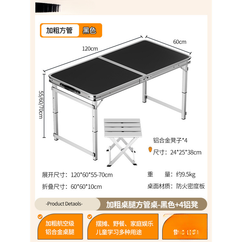 • [업그레이드된 알루미늄 합금 사각 튜브] 120*60cm 블랙 + 알루미늄 스툴 4개