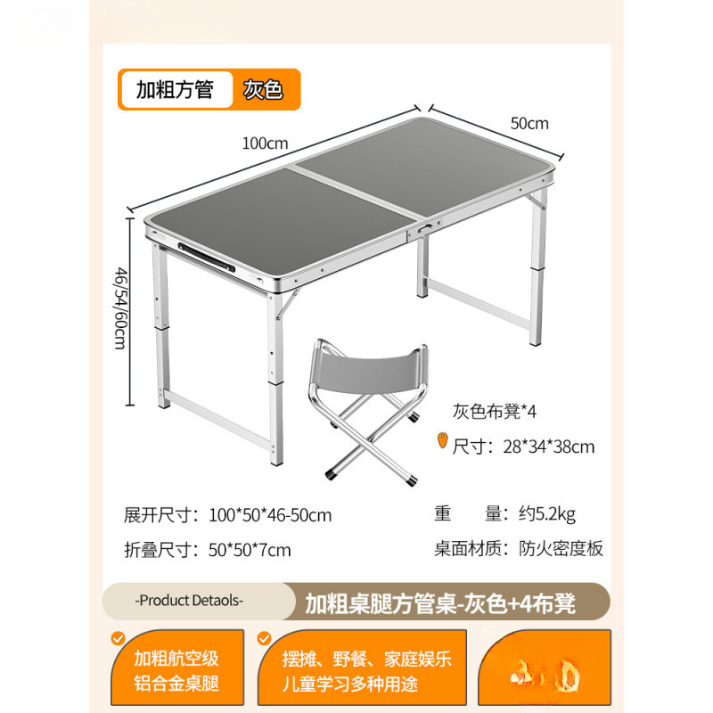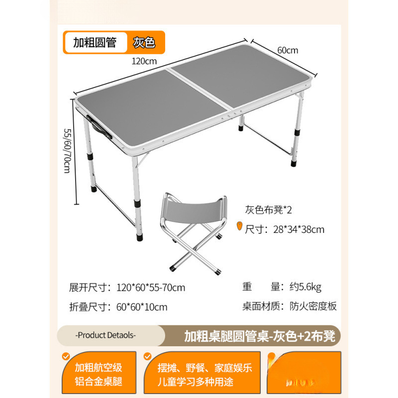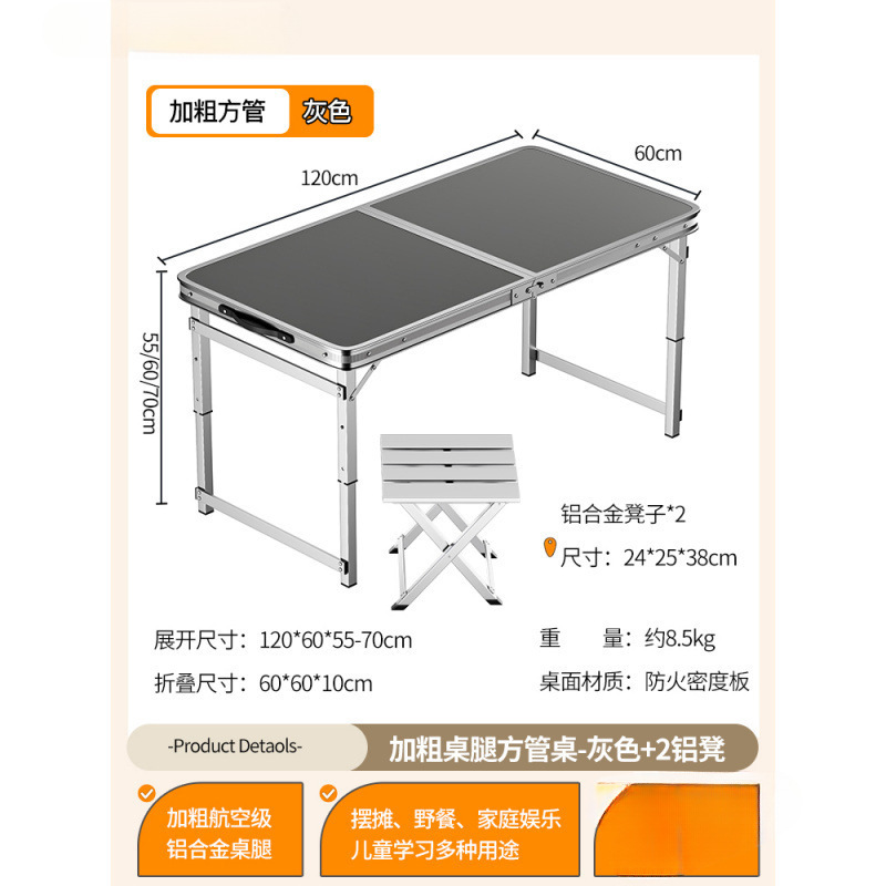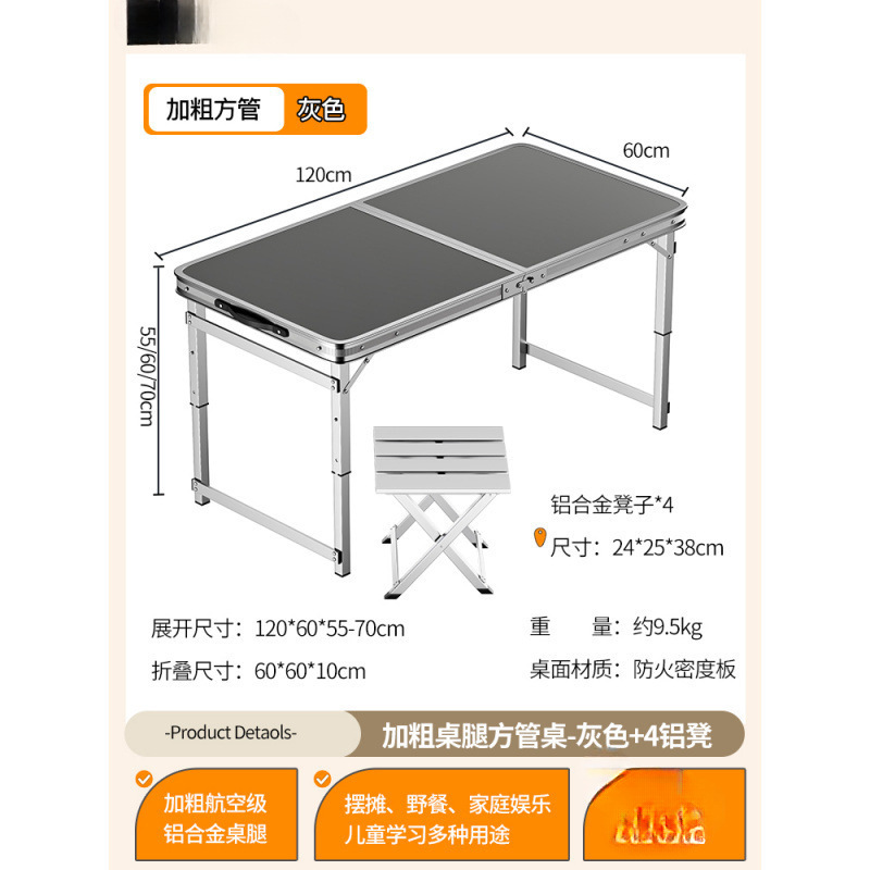 • [업그레이드된 알루미늄 합금 사각 튜브] 120*60cm 회색 + 알루미늄 스툴 4개
