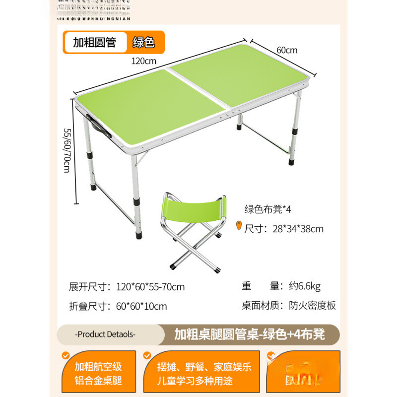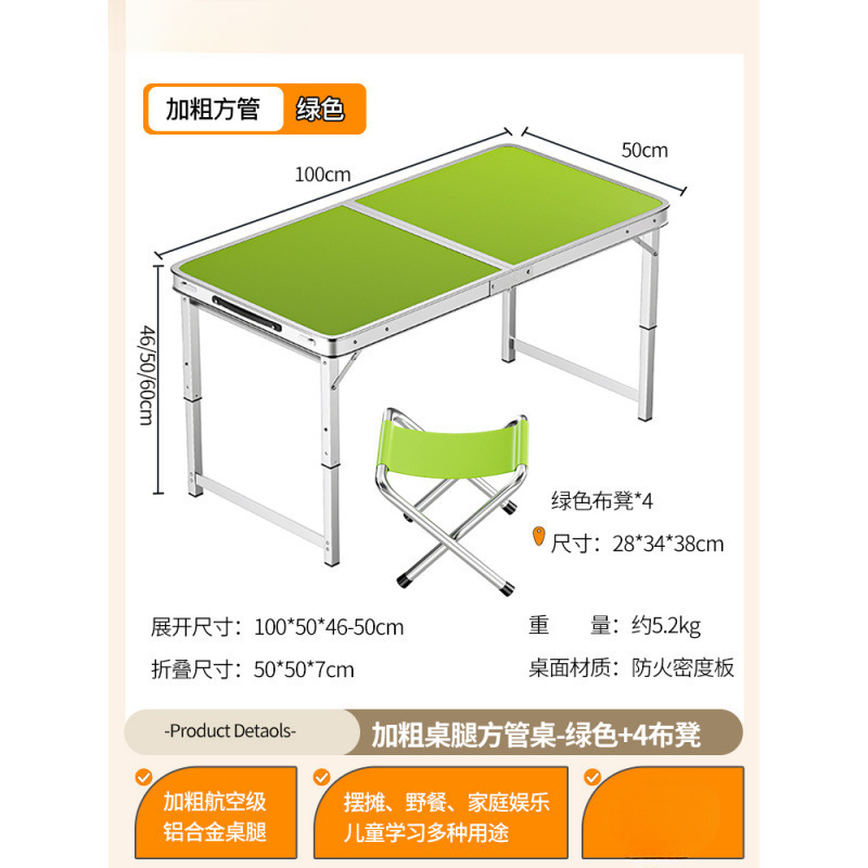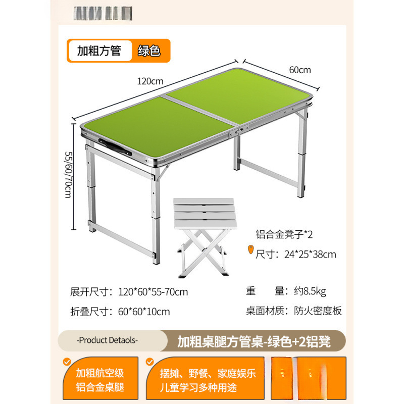 • [업그레이드된 알루미늄 합금 사각 튜브] 120*60cm 녹색 + 알루미늄 스툴 4개