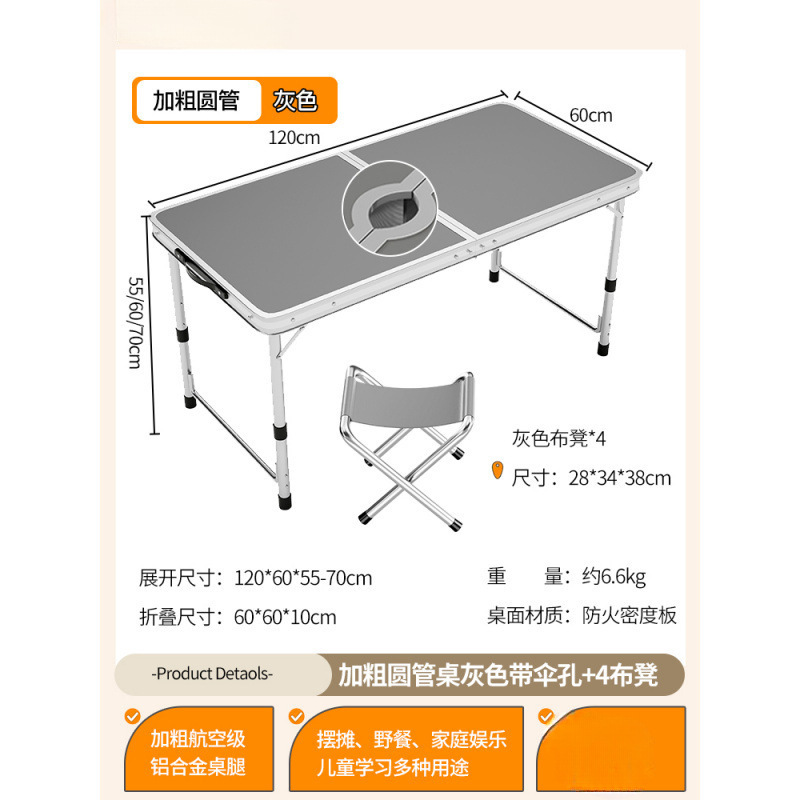• [알루미늄 합금 원형 튜브] 120*60cm 회색 우산 구멍 + 천 스툴 4개