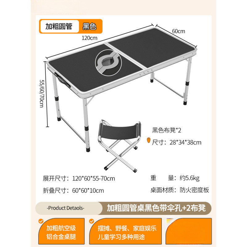 • [알루미늄 합금 원형 튜브] 120*60cm 검정색 우산 구멍 + 천 스툴 4개