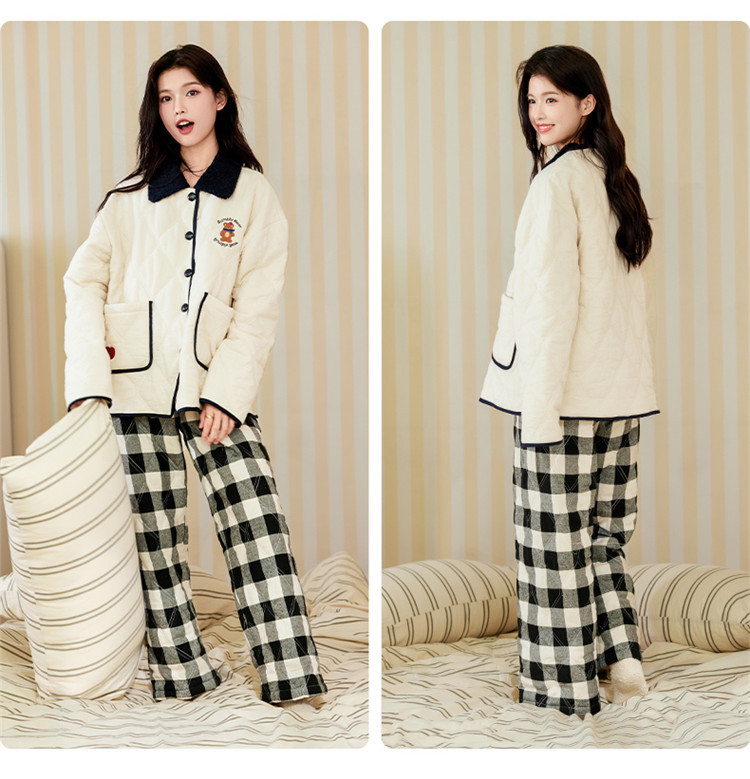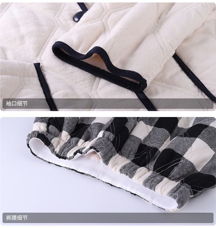 새로운 두꺼운 세트, 고급스러운 흑백 체크무늬 곰돌이 삼중 누빔 가디건 잠옷, 외출복으로도 착용 가능스토어 가기