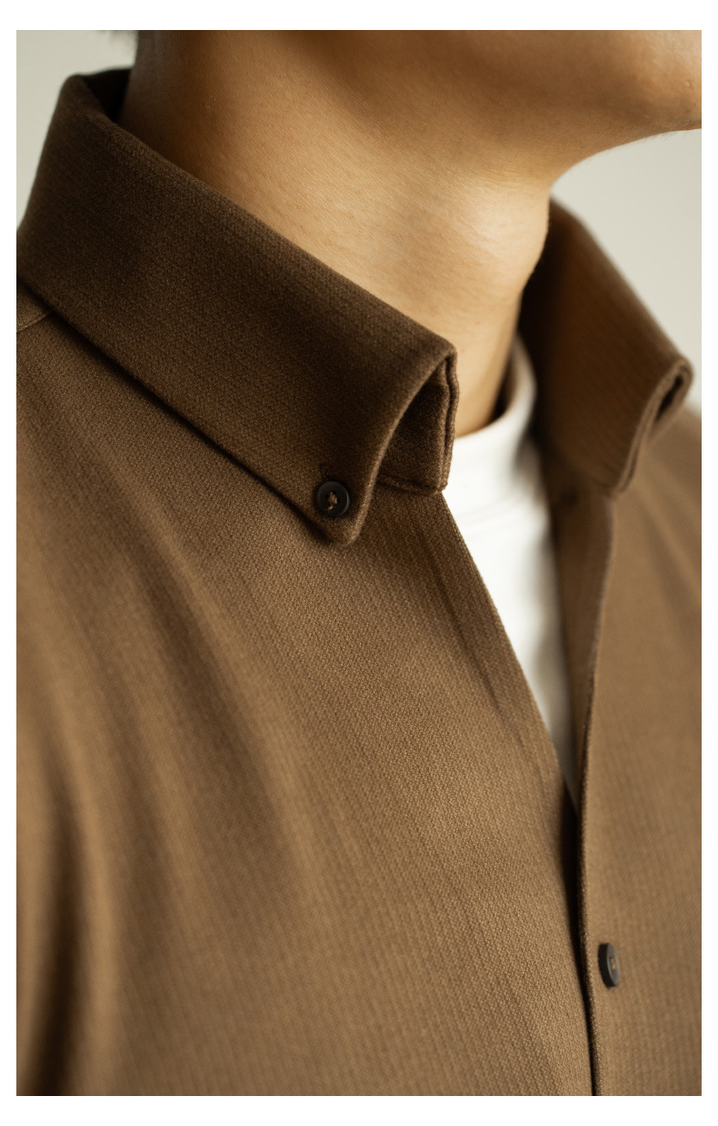올드 머니 스타일 보온 기모 소재 작은 V넥 긴팔 셔츠 남성용 2025 가을 겨울 루즈핏 캐주얼 라펠 셔츠스토어 가기