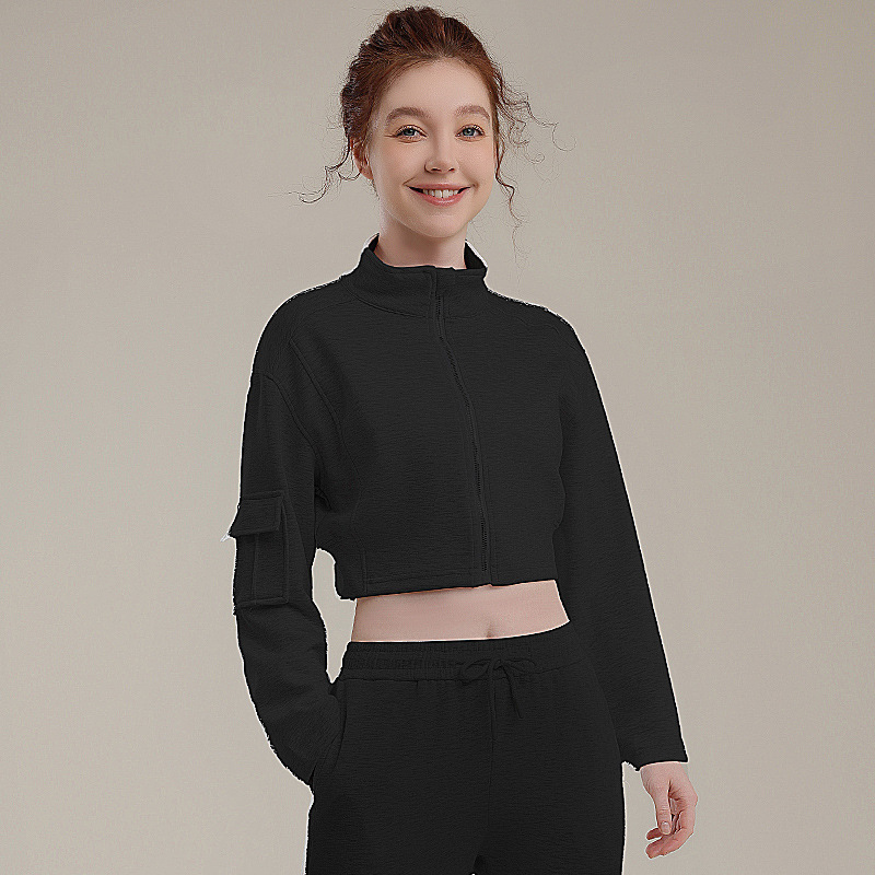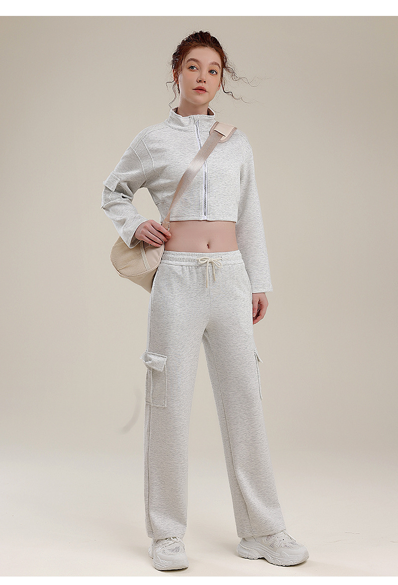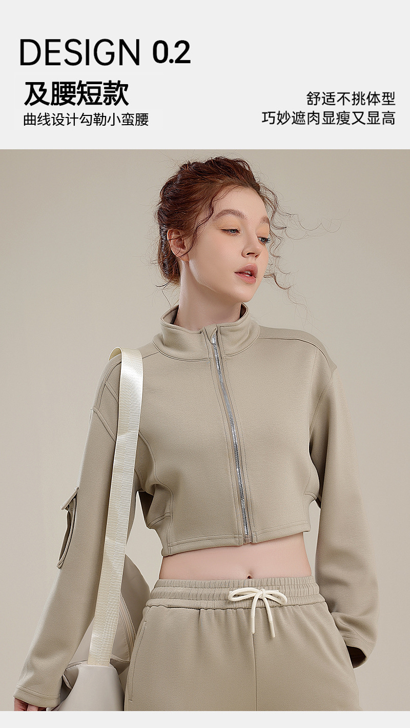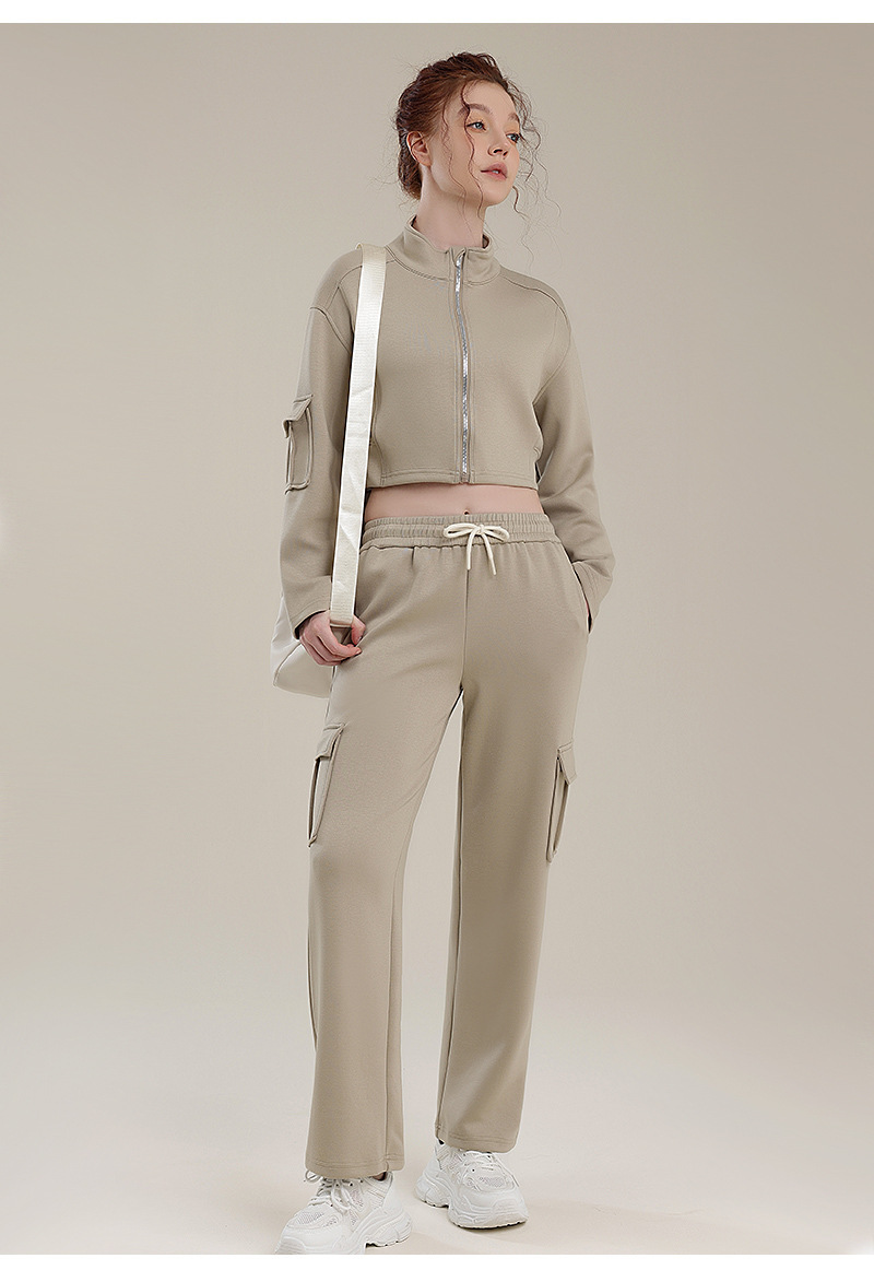 유럽과 미국 국경 가을과 겨울 여성 스포츠 피트니스 투피스 세트 스탠드 칼라 느슨한 슬림 스웨터 피트니스 요가 의류 세트스토어 가기