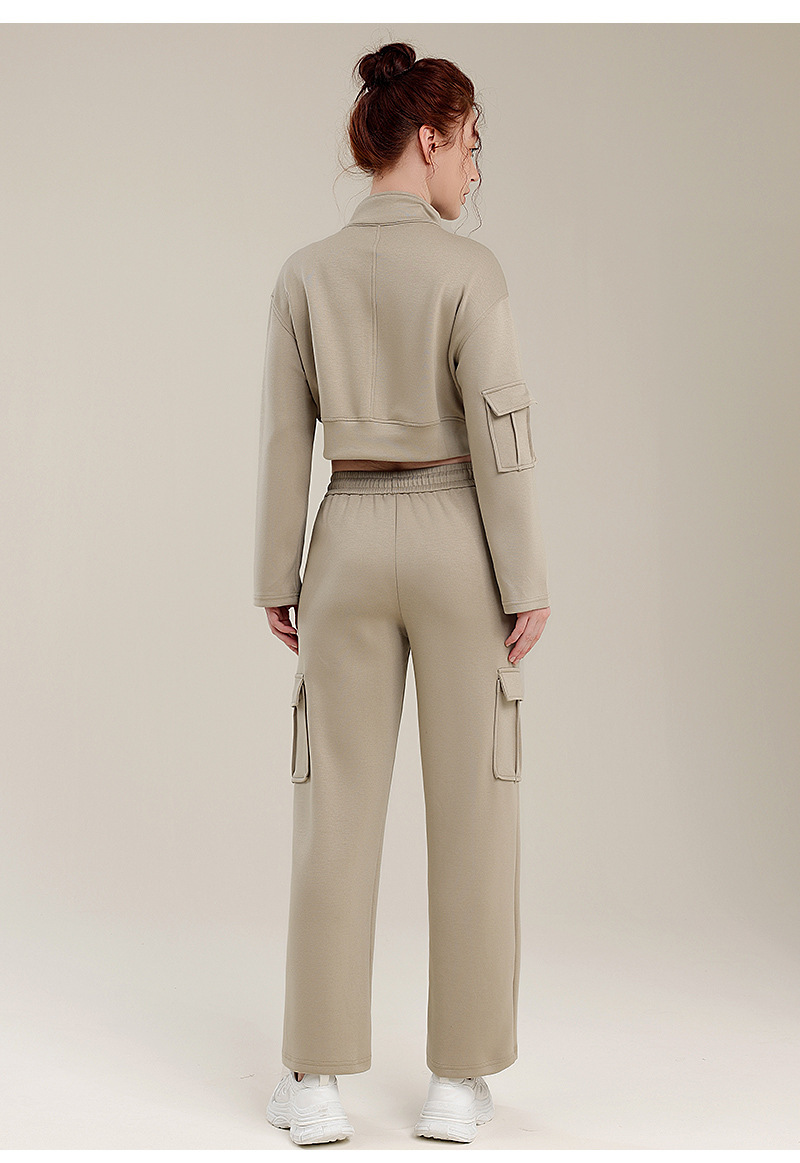 유럽과 미국 국경 가을과 겨울 여성 스포츠 피트니스 투피스 세트 스탠드 칼라 느슨한 슬림 스웨터 피트니스 요가 의류 세트