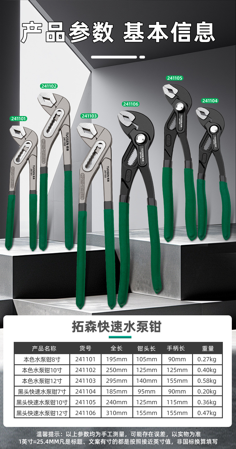 • 241103, Tuosen 내추럴 워터 펌프 플라이어 12inch, 벌크, 0.58kg