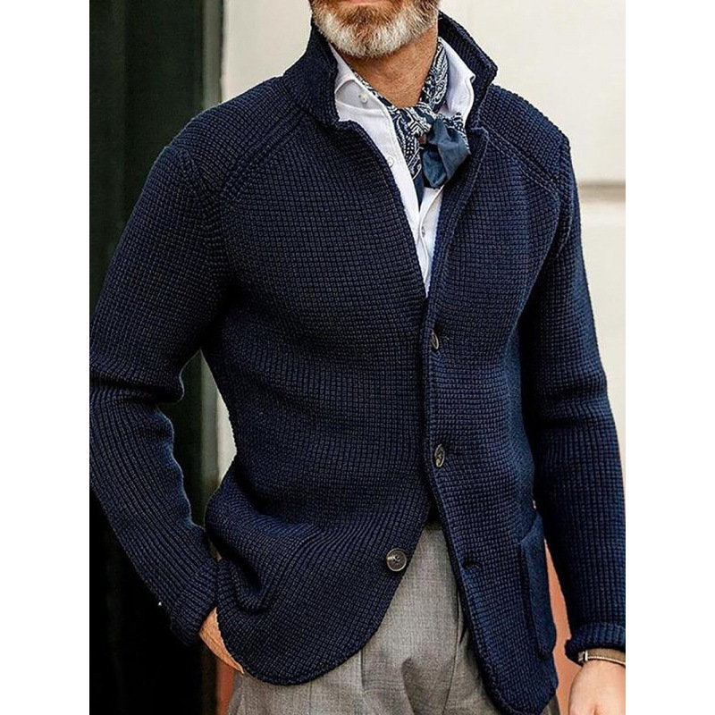 유럽과 미국의 패션 아마존 독립 역 2024 남성 캐주얼 긴 소매 단색 니트 스웨터 남성 코트