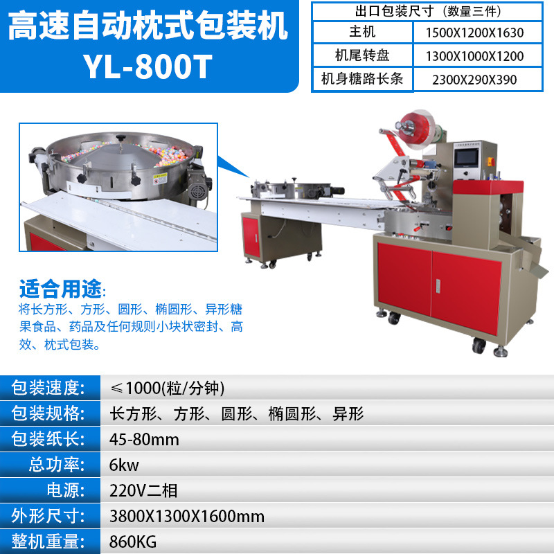 • YL-800T 사탕 베개 고속 포장기, 분당 최대 1000개