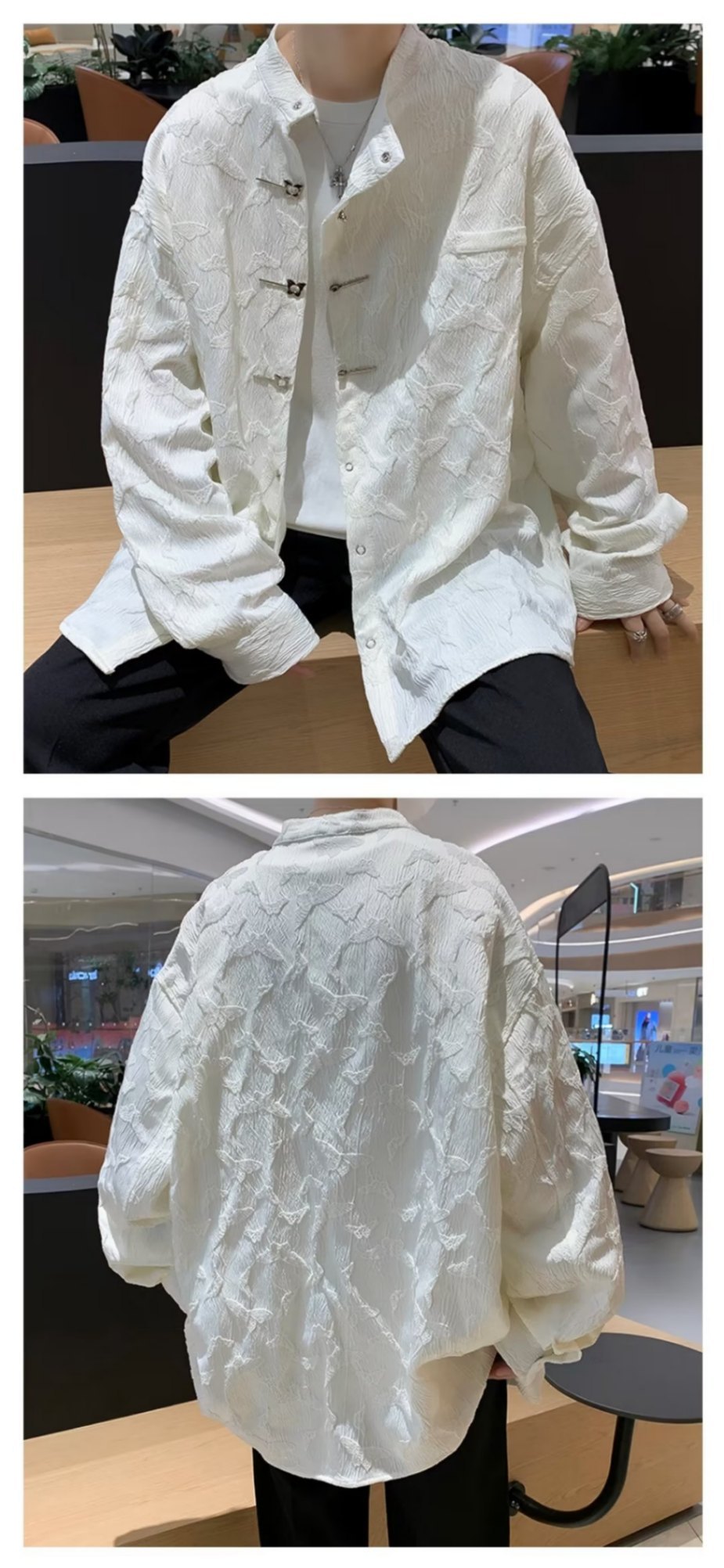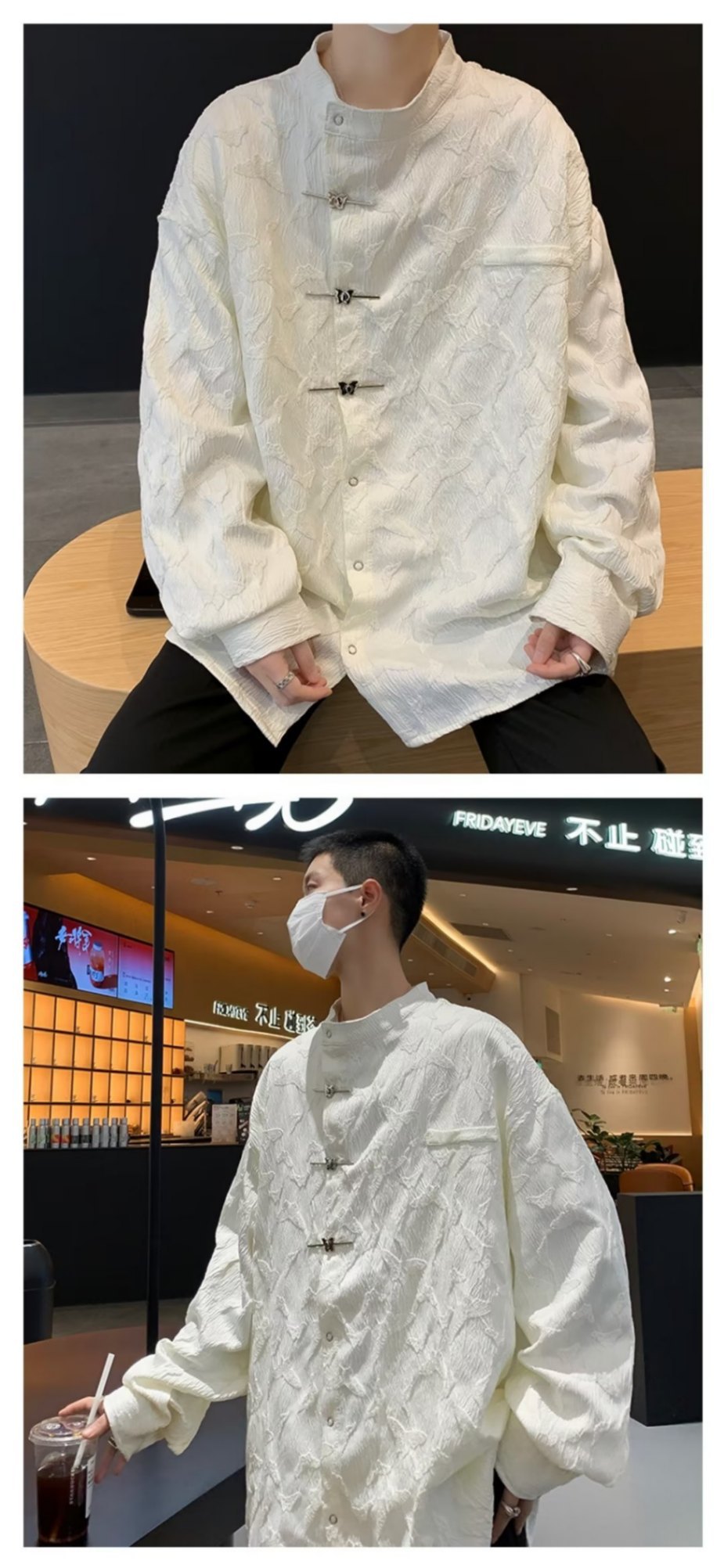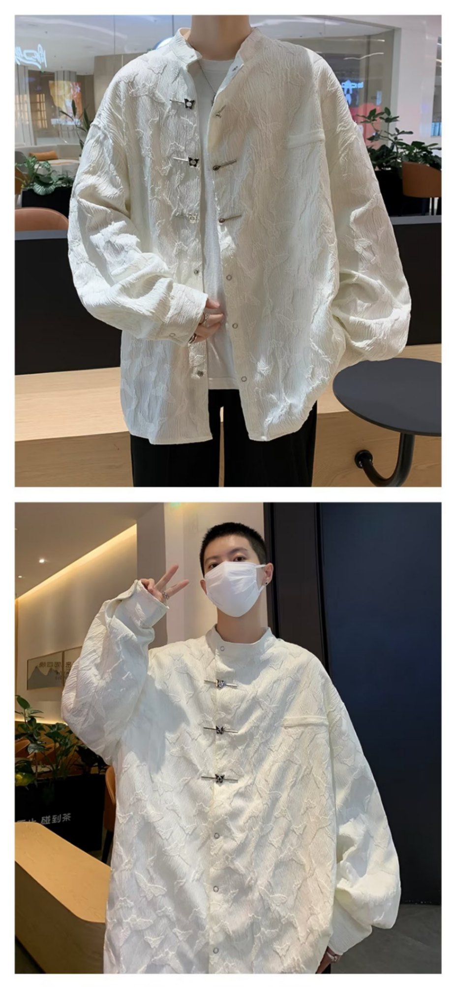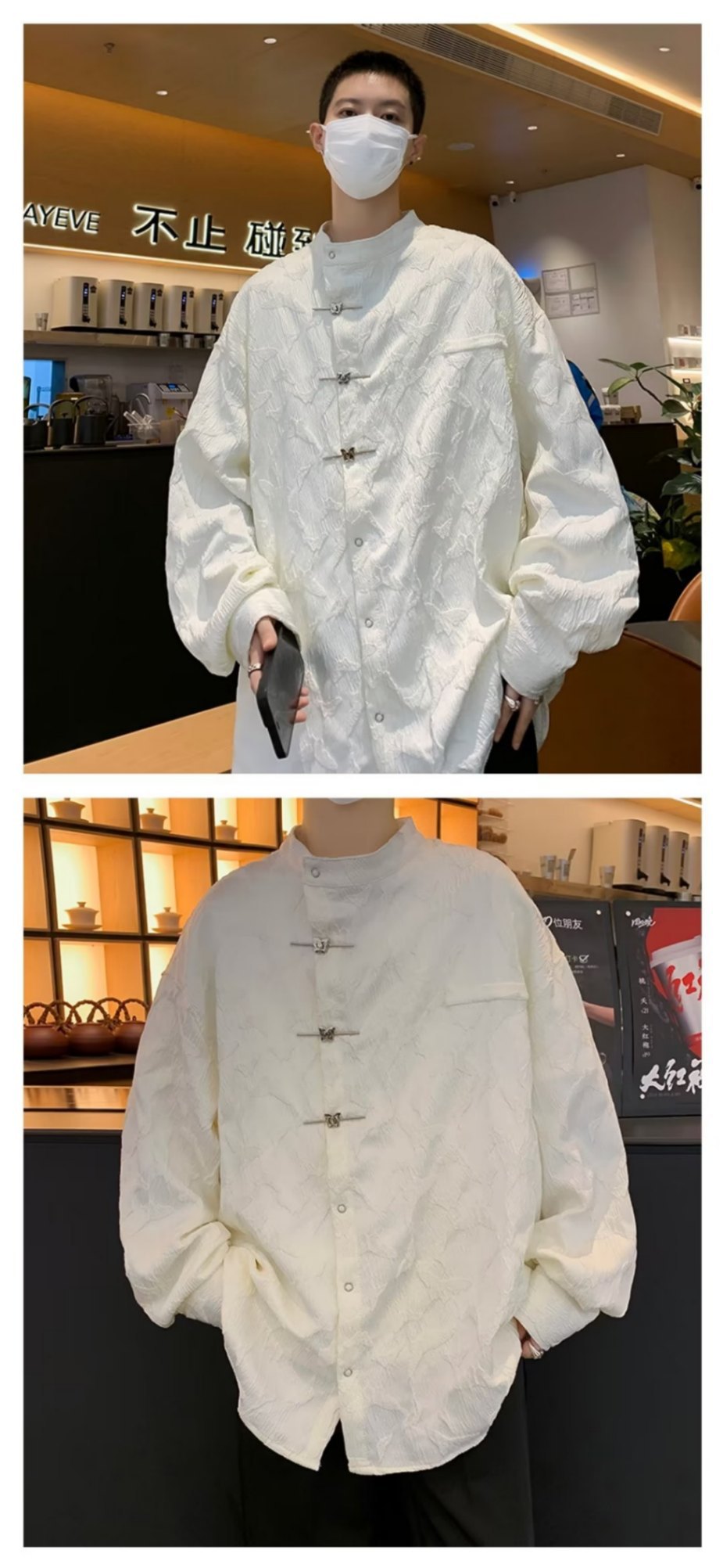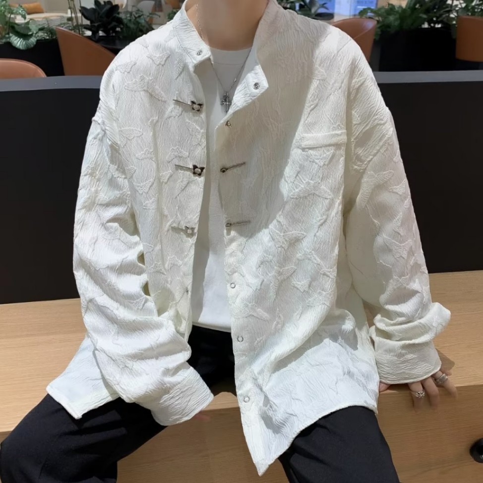 국가 유행 새로운 중국 스타일 나비 버클 다크 패턴 긴 소매 셔츠 남자 일본 스타일 레트로 세트 틈새 탕 세트 코트 셔츠 의류스토어 가기
