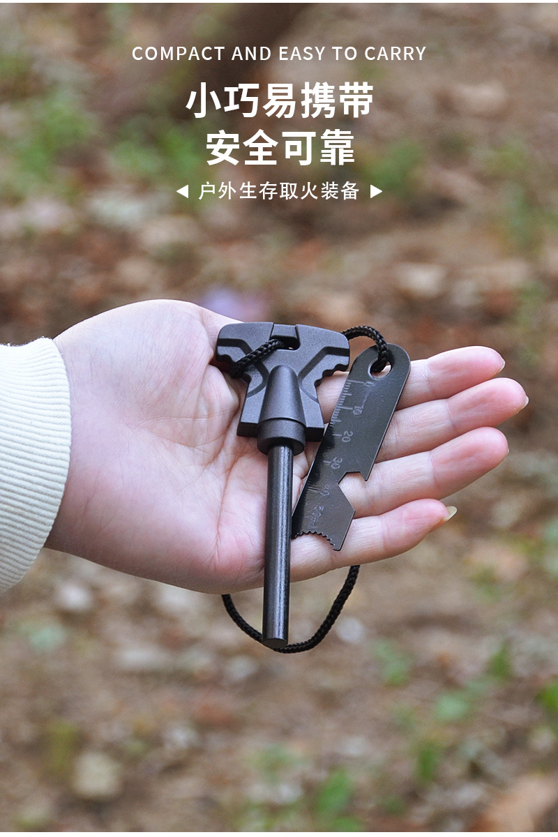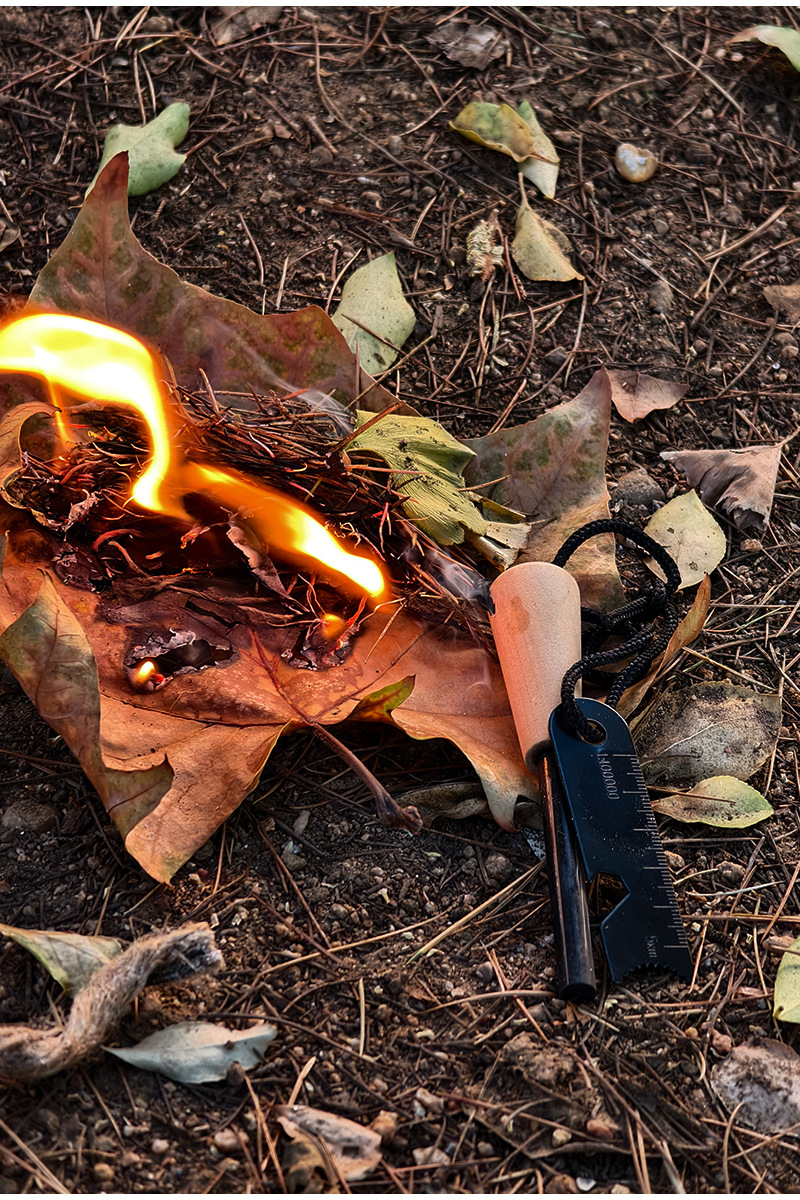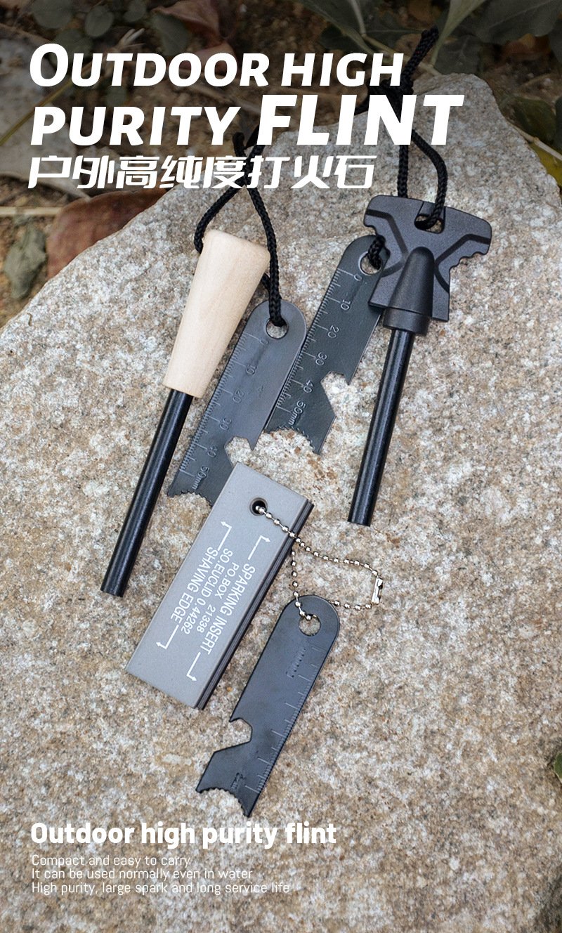 휴대용 야외 파이어 스톤 캠핑 장비 야생 생존 도구 마그네슘 스틱 파이어 스타터 나무 손잡이 파이어 스틱
