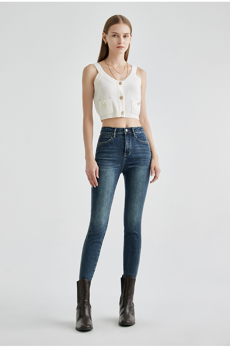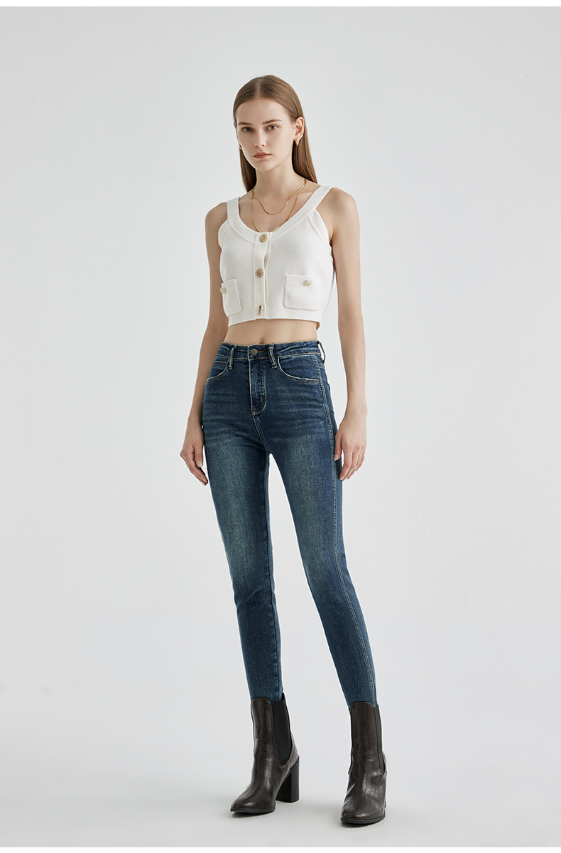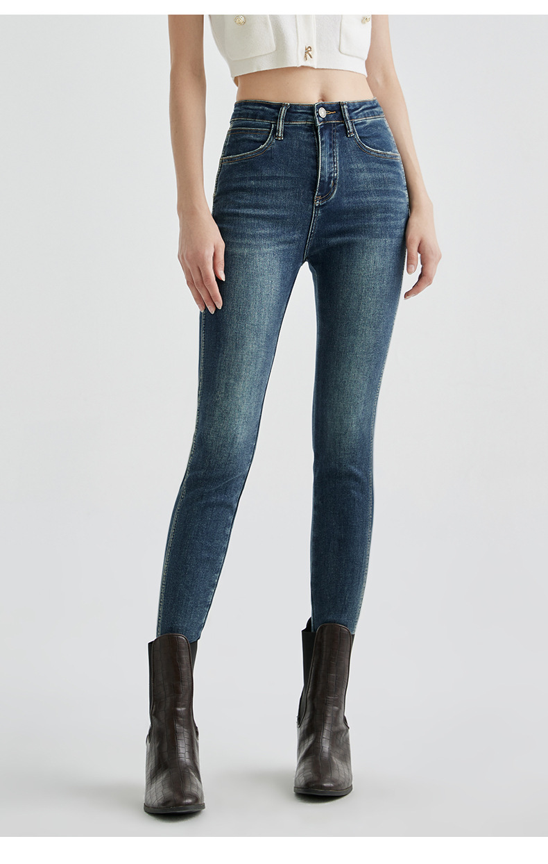 Ji 또한 2024 가을 고탄성 청바지 연필 바지 여성용 높은 허리 슬림 핏 통근 슬리밍 크롭 팬츠 트렌디