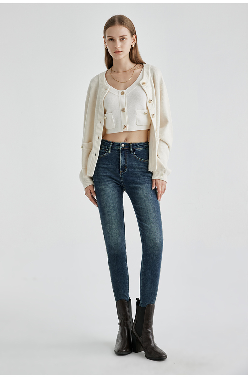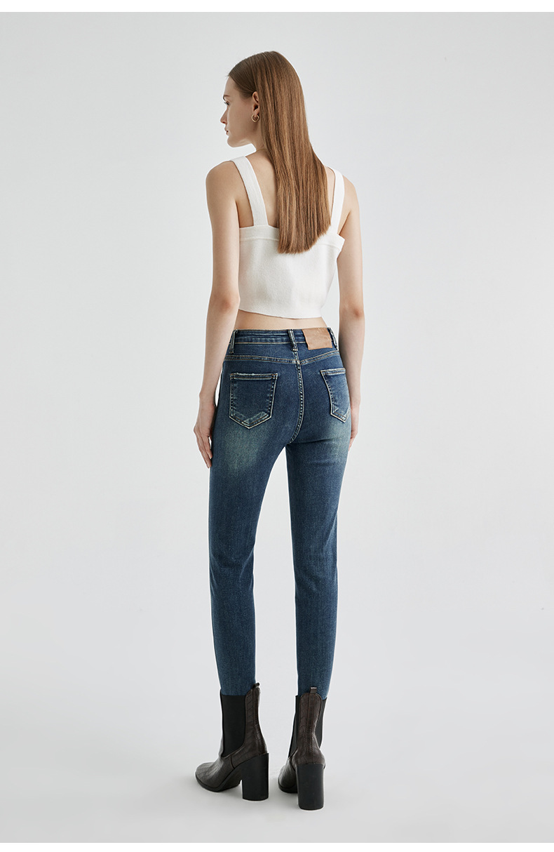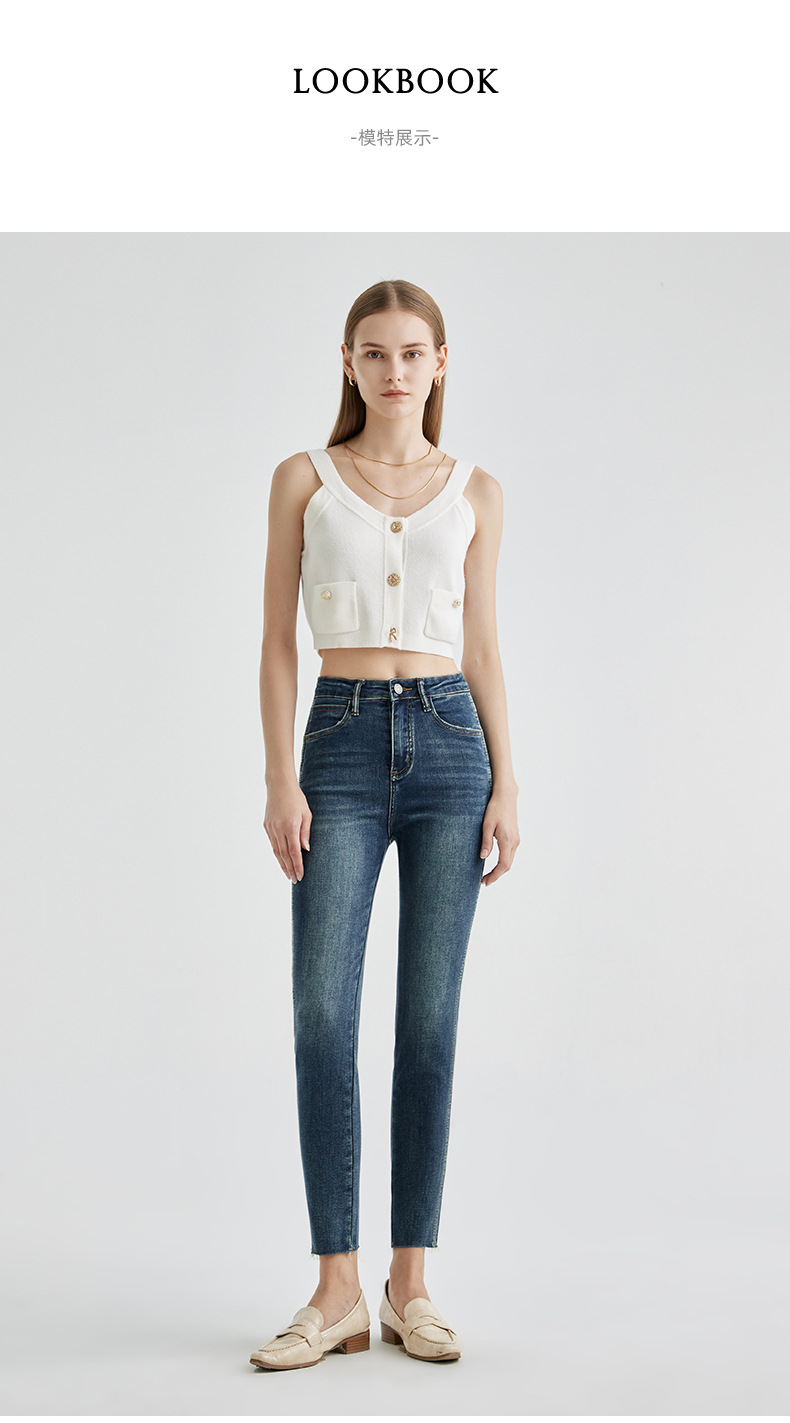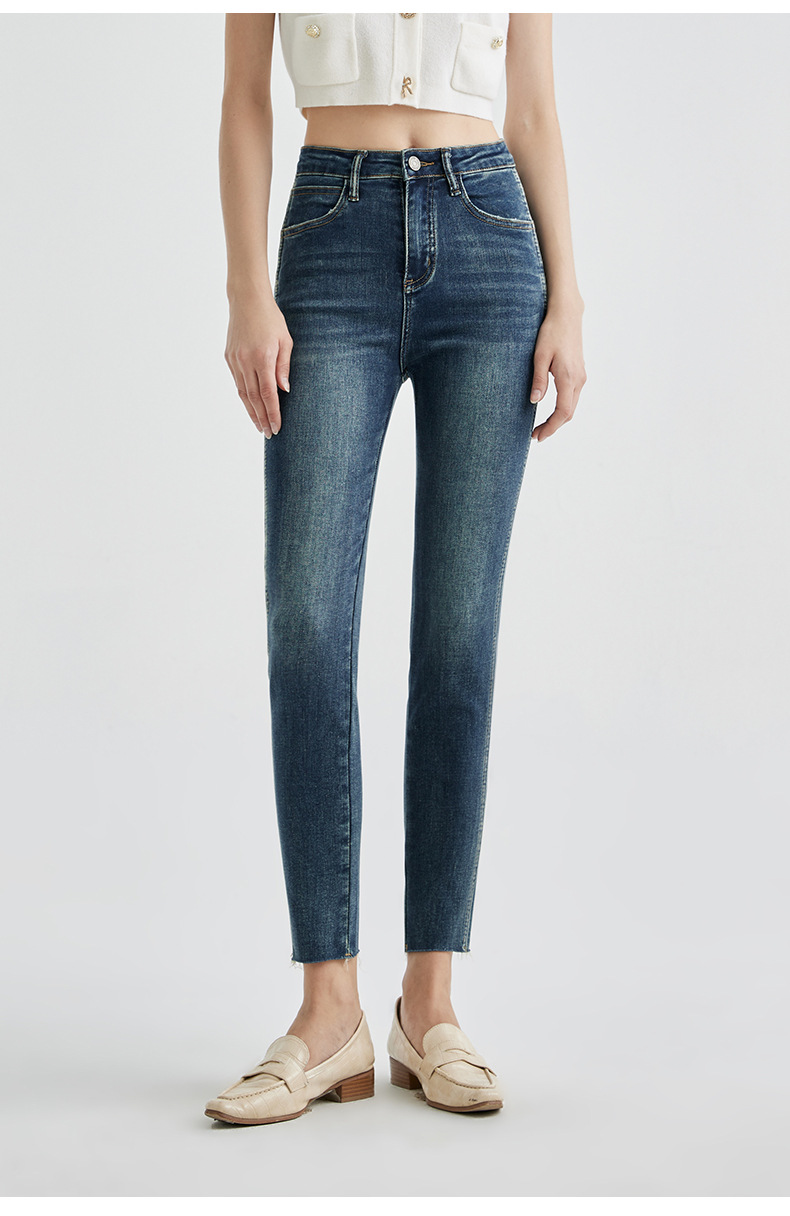 Ji 또한 2024 가을 고탄성 청바지 연필 바지 여성용 높은 허리 슬림 핏 통근 슬리밍 크롭 팬츠 트렌디스토어 가기