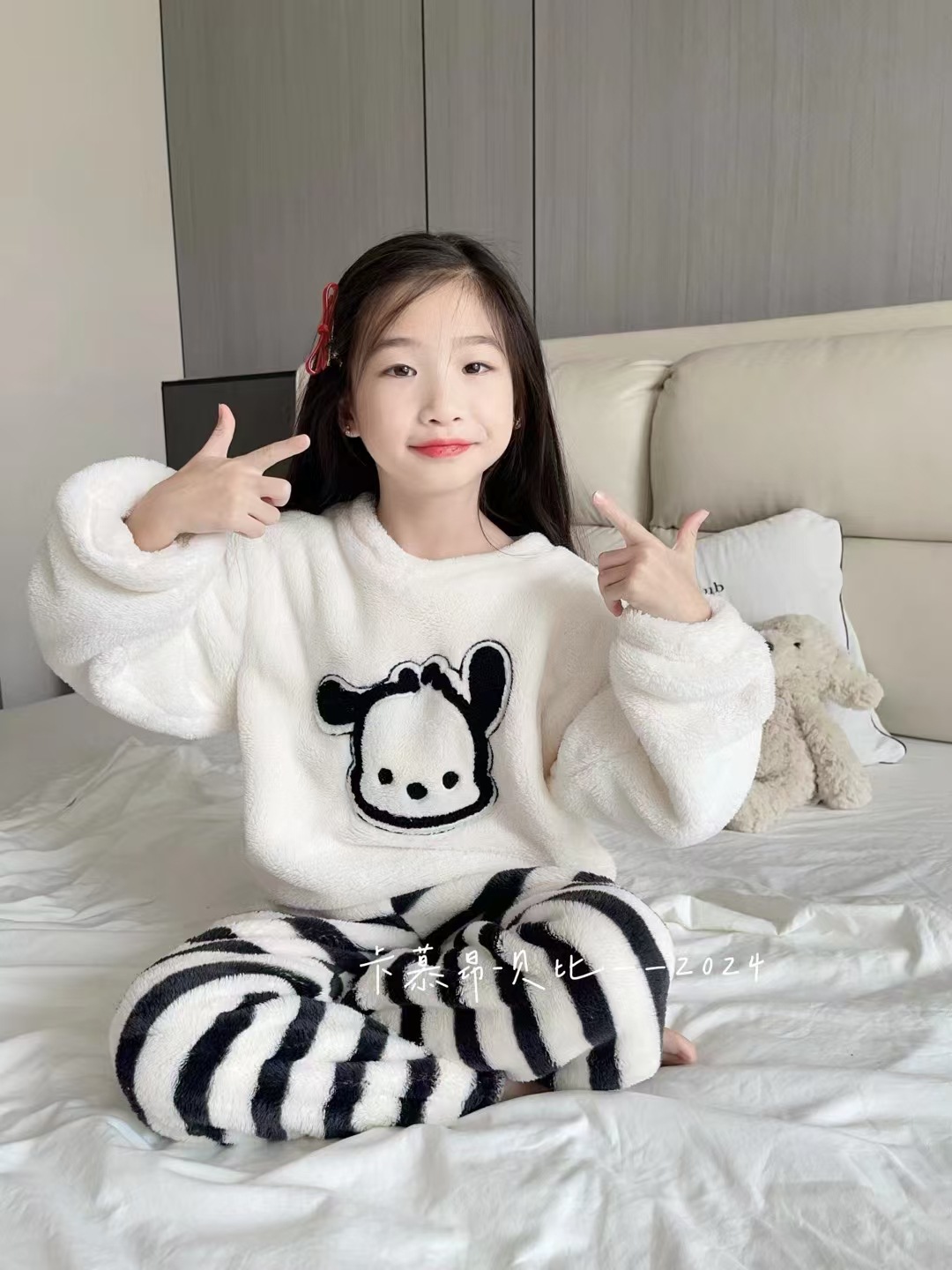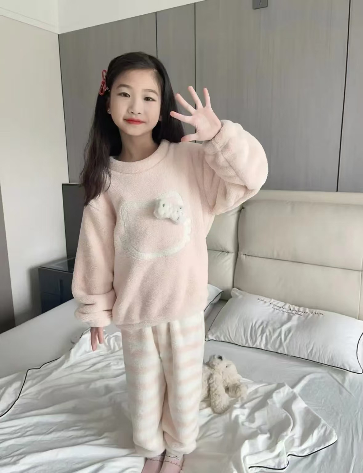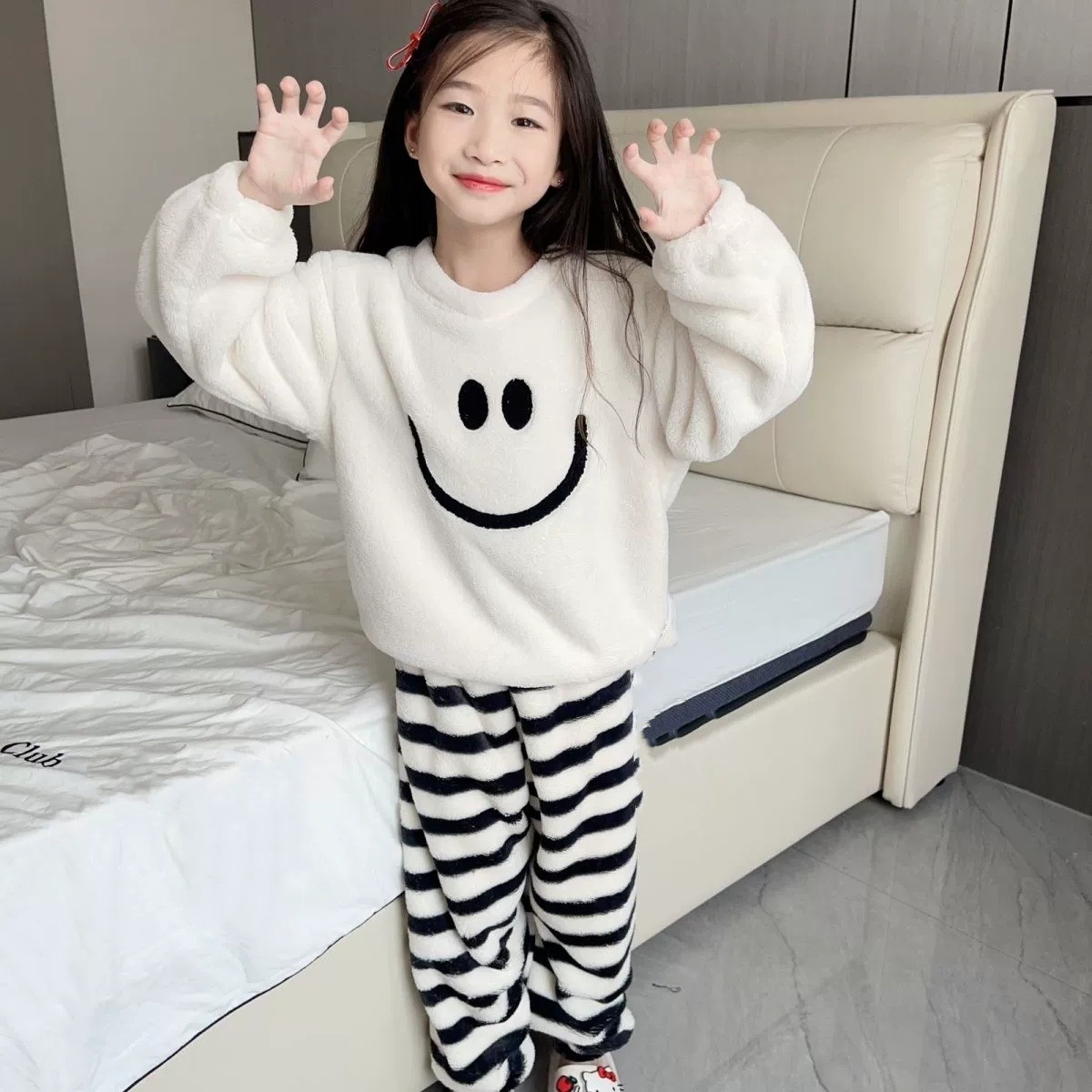 어린이 부모-어린이 홈 옷 어린이 가을과 겨울 두꺼운 따뜻한 벨벳 슬리퍼 세트 소녀를위한 스위트 남성 벨벳스토어 가기