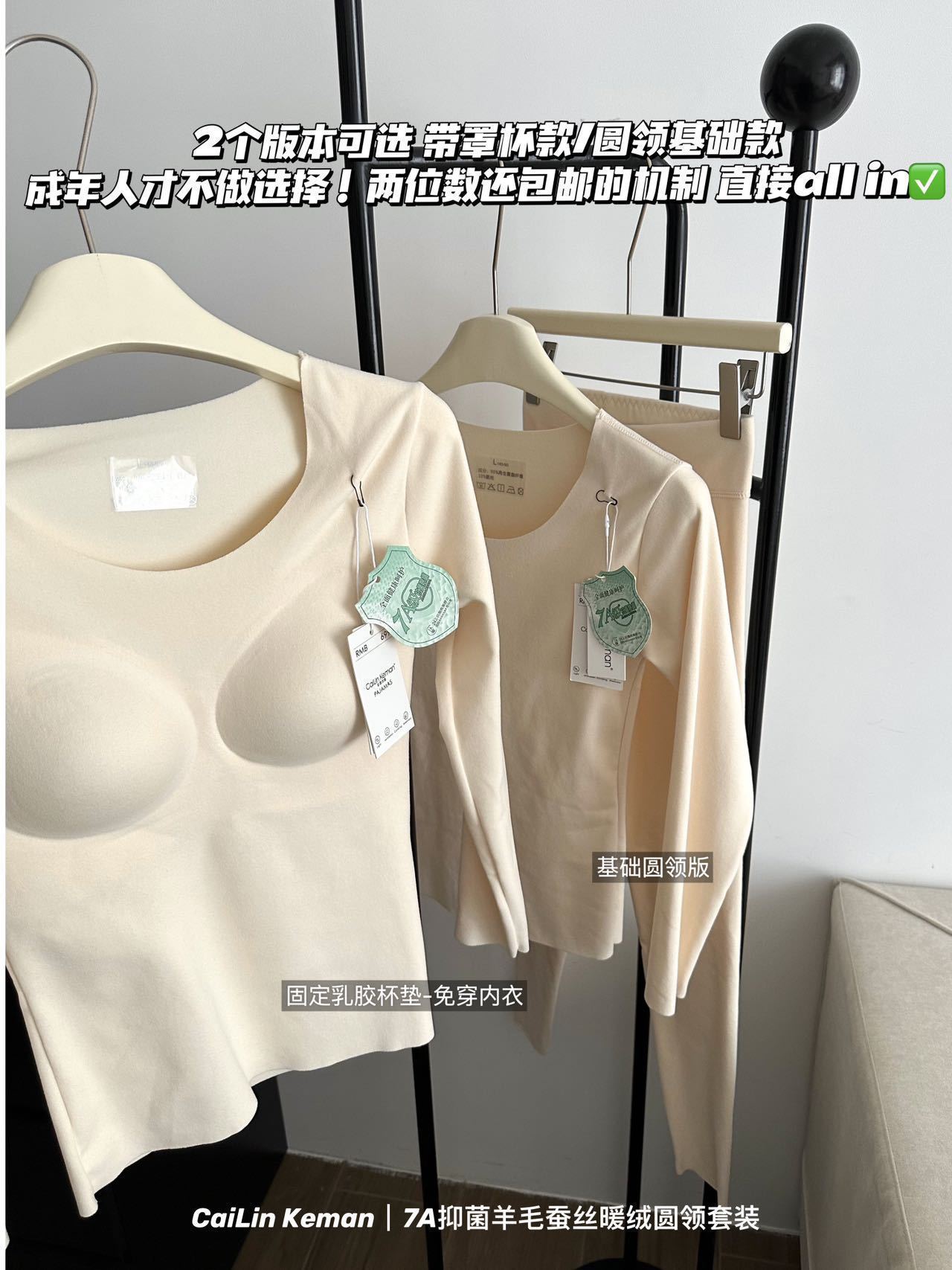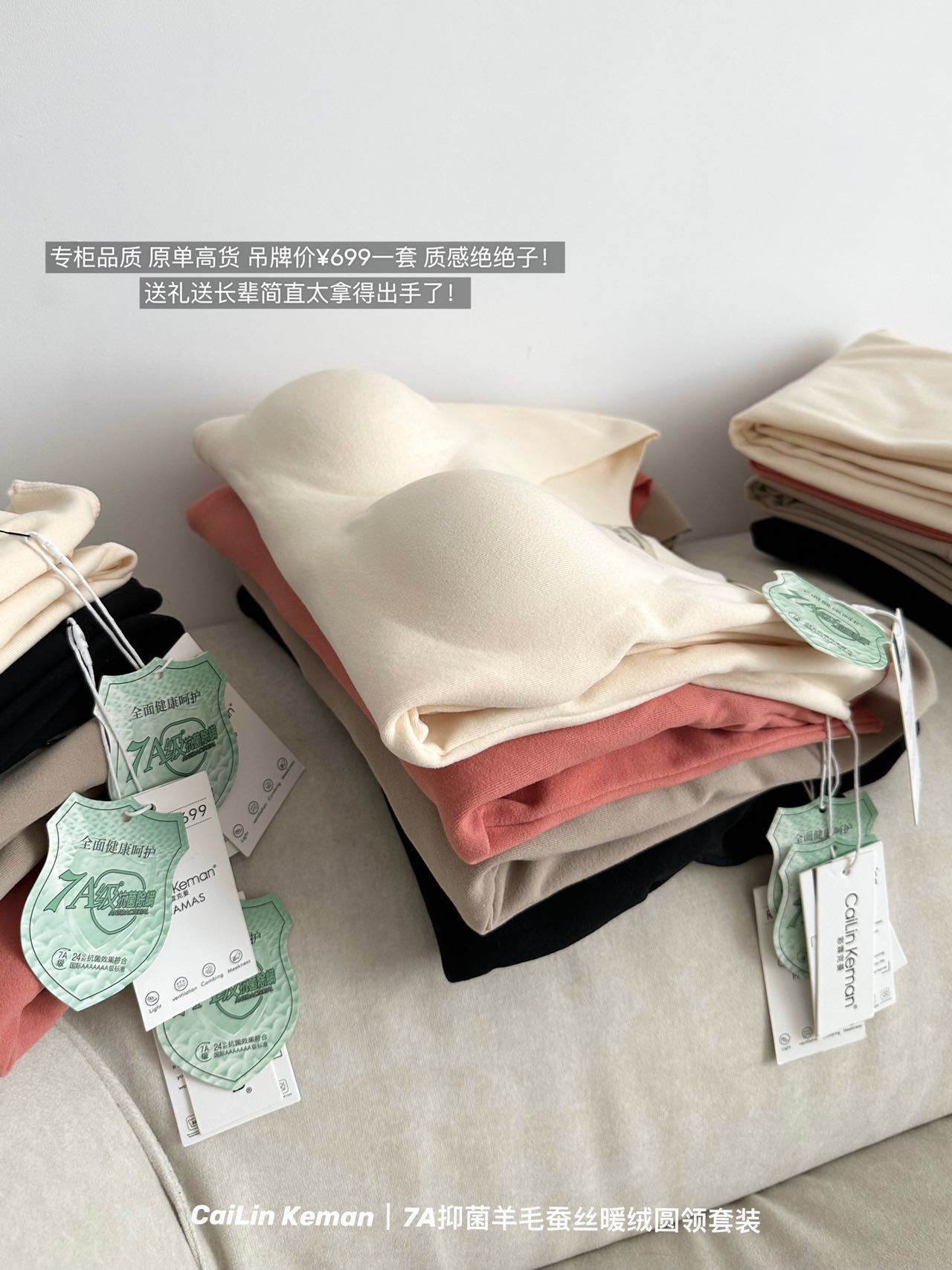 面料:再生聚酯纤维90%(含羊绒蚕丝) 氨纶10%