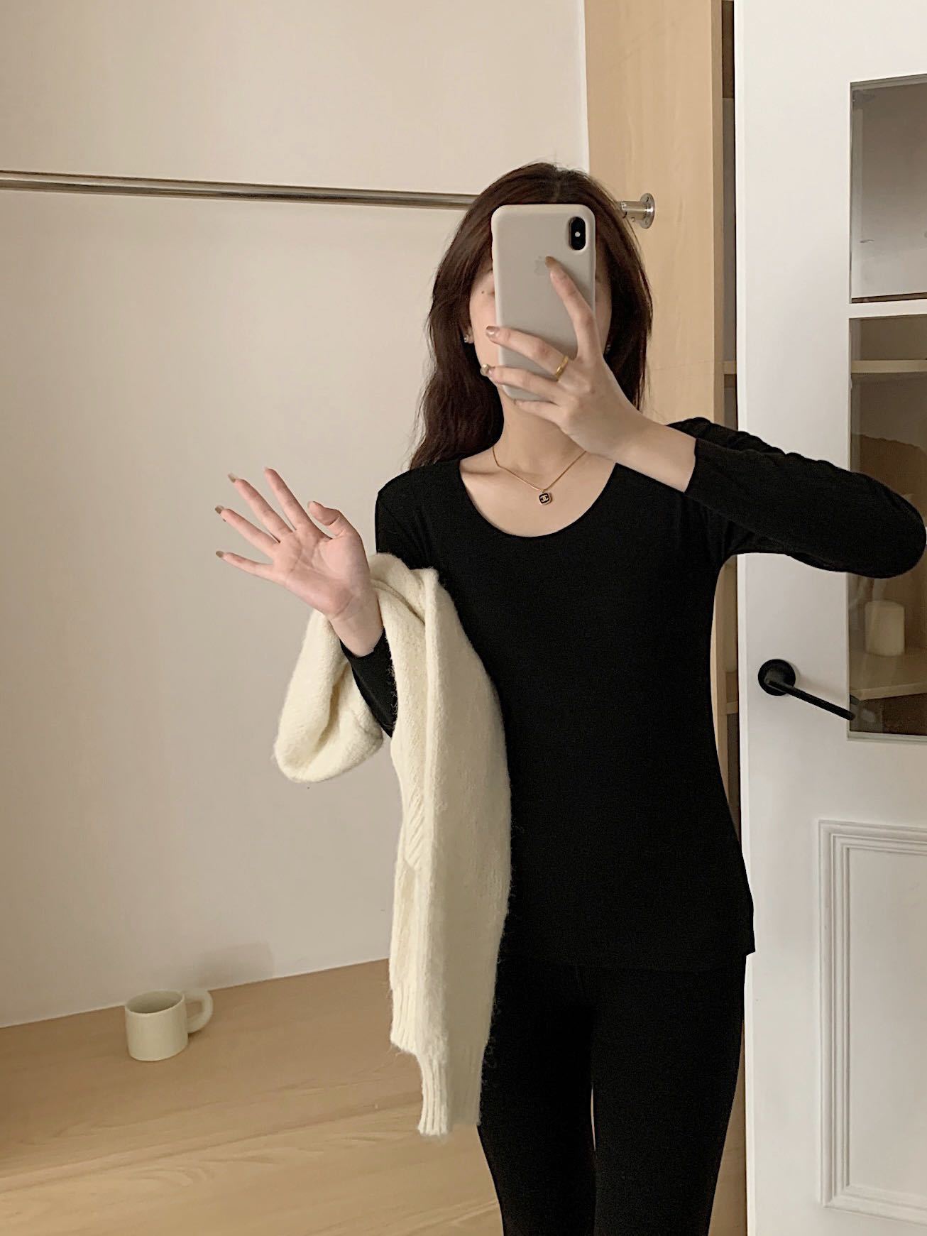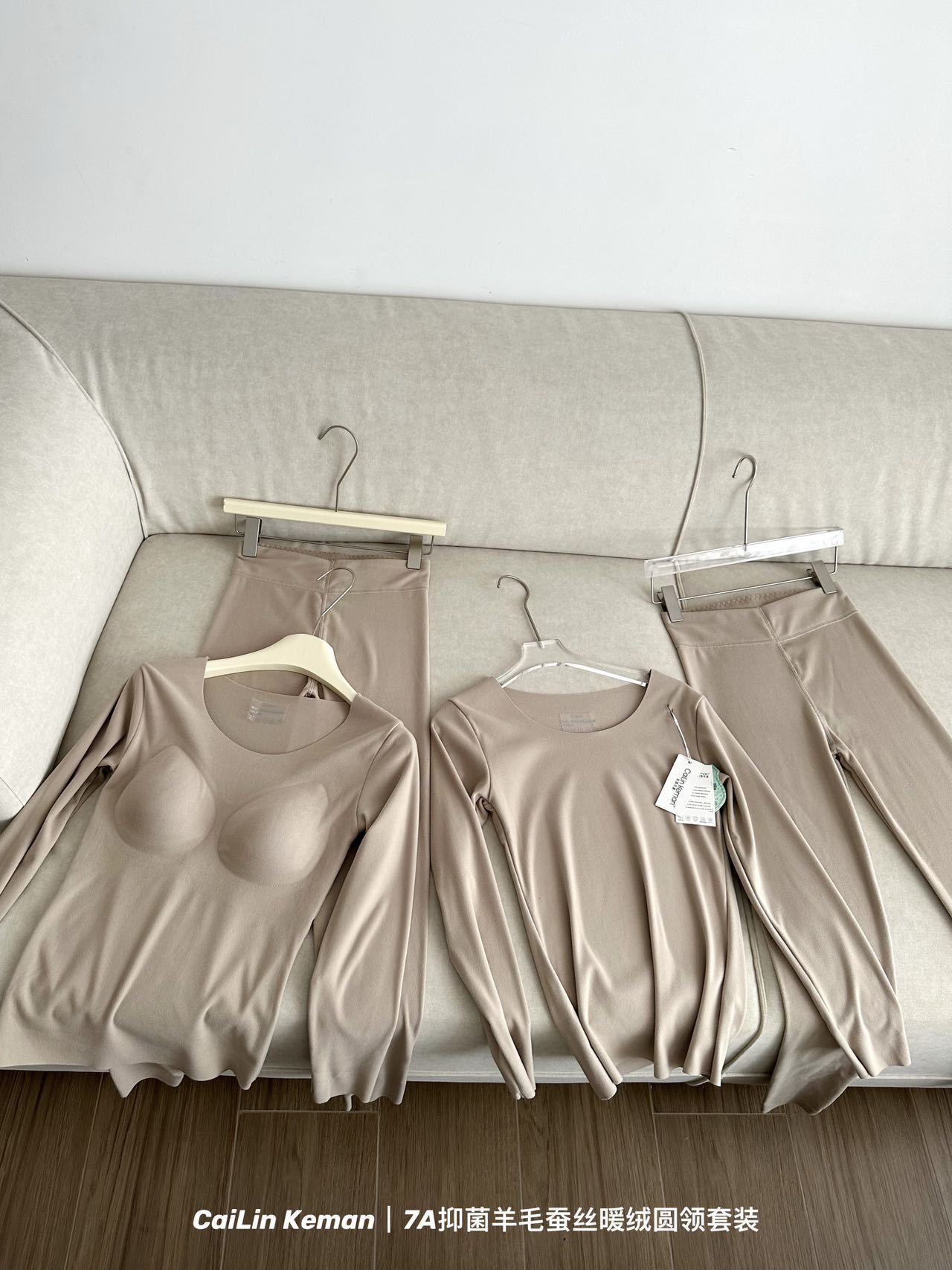안팅루 가을과 겨울 양모 실크 따뜻한 양털 따뜻한 옷 난방 잠금 세트 여성용 단색 둥근 양면 양털베이스 옷