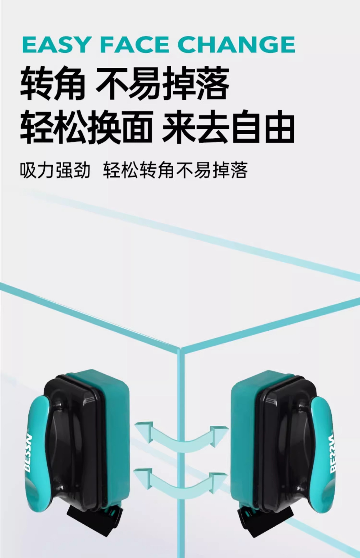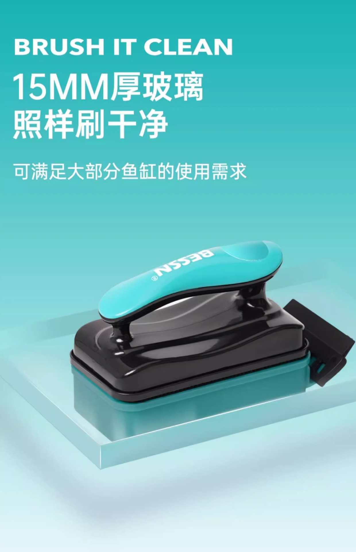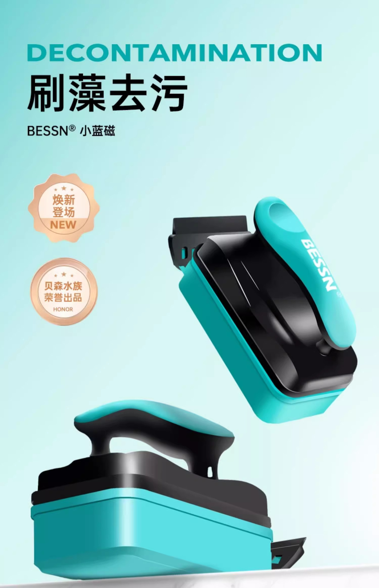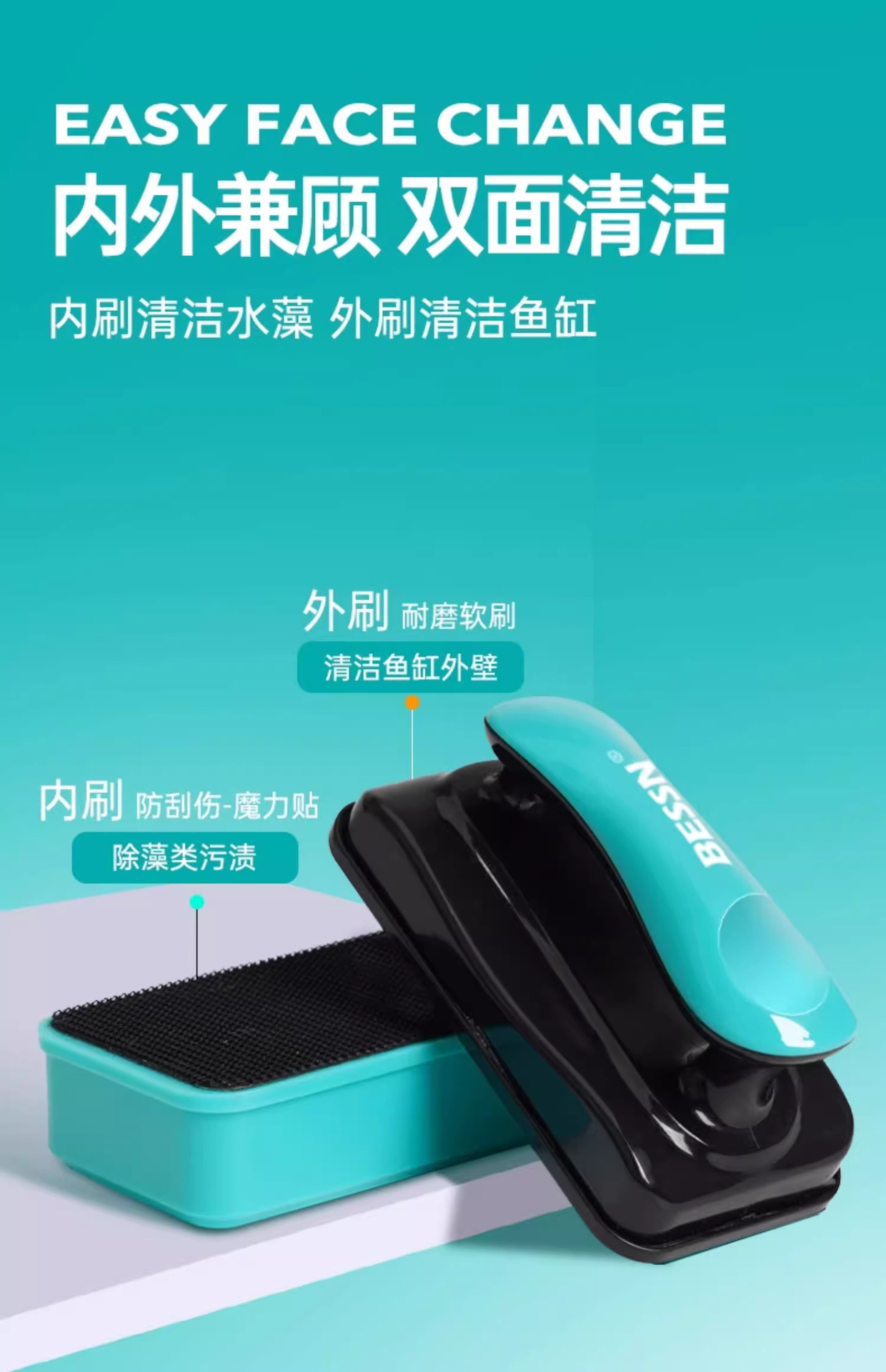 BESSN 어항 브러시 마그네틱 브러시 강한 자기 유리 청소 유물 양면 청소 내부 벽 죽은 각도 긁어 조류 칼