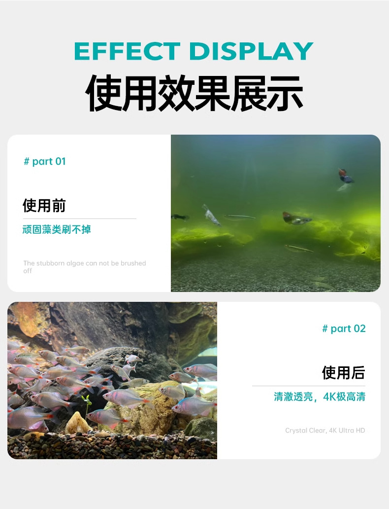 • [업그레이드된 초강력 자석, 최대 6mm까지 흡수 가능] 조류 제거 스크레이퍼가 포함된 소형 자석 브러시(어항 30-80CM에 적용 가능)