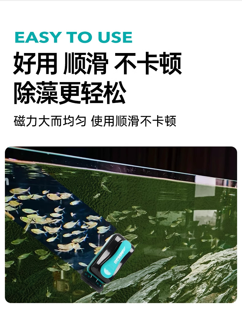 • [업그레이드된 초강력 자석, 최대 15mm까지 흡수 가능] 조류 제거 스크레이퍼가 포함된 대형 자석 브러시(어항 60-180CM에 적용 가능)