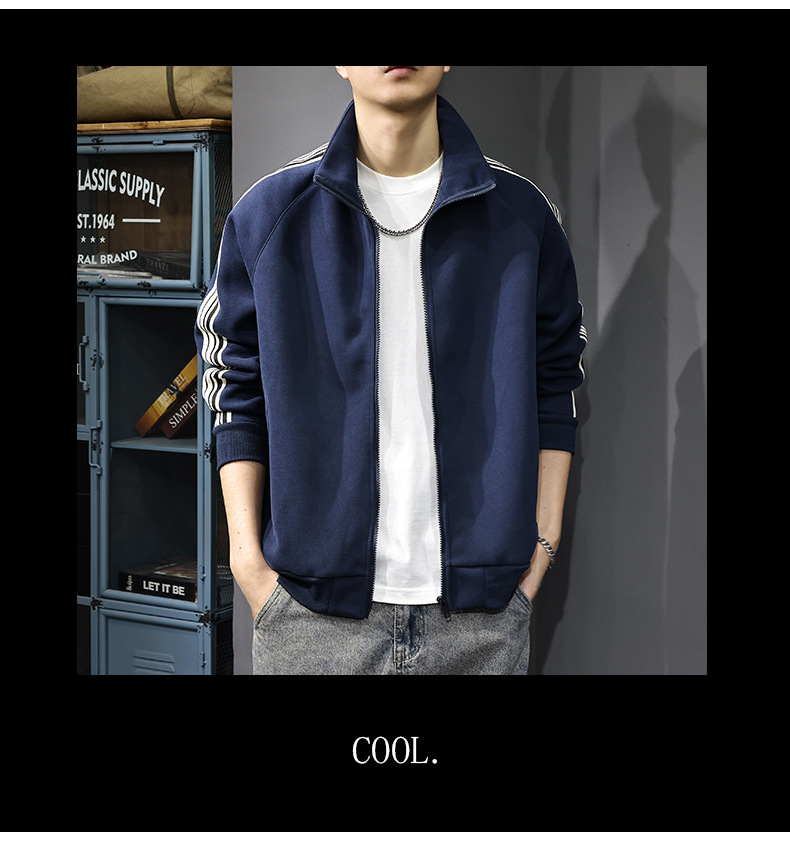 가을 아메리칸 스타일 레트로 칼라 카디건 스웨터 남자의 무거운 느슨한 플러스 사이즈 재킷 줄무늬 스포츠 캐주얼 자켓 트렌디스토어 가기