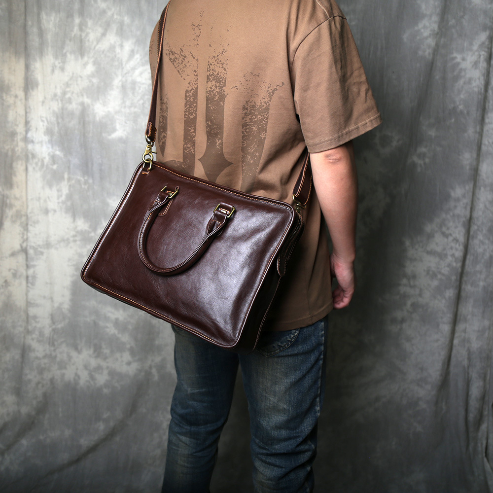 레트로 핸드백, 1층 소가죽 서류가방, 남성용 캐주얼 식물성 무두질 가죽 컴퓨터 가방, 일상 출퇴근 가방, 파일 가방스토어 가기