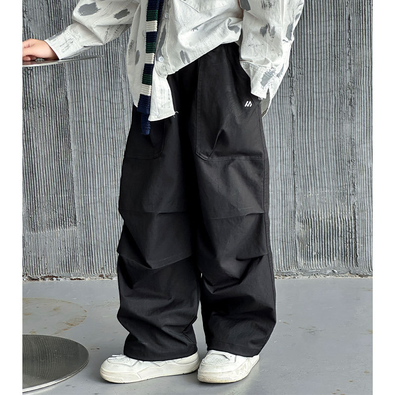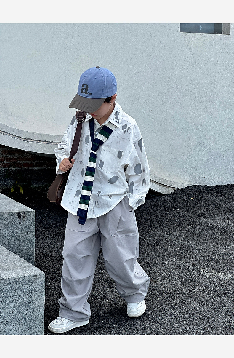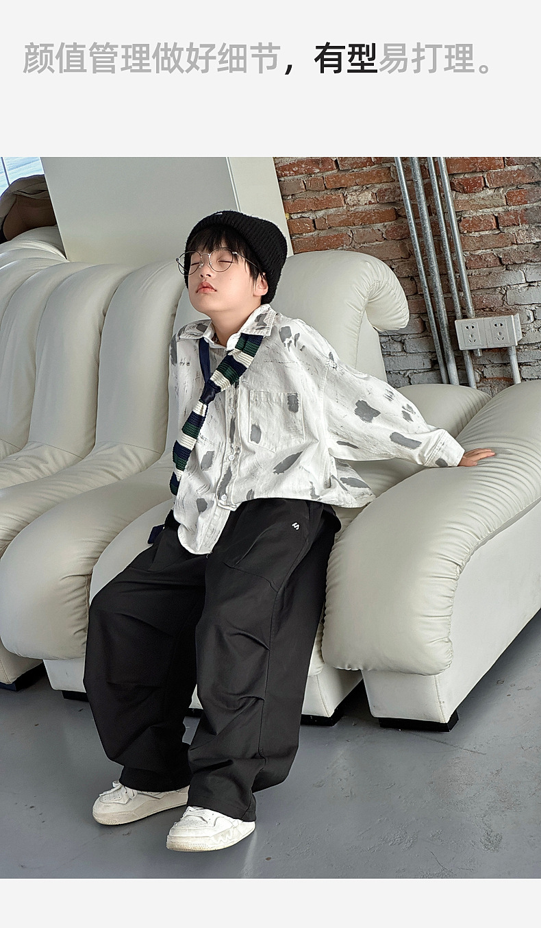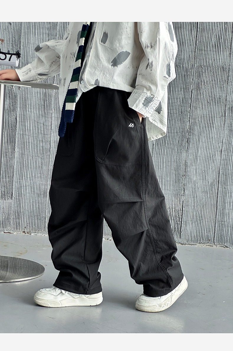 2025春季新款水洗华棉男童卫裤湖州织里童装儿童直筒弯刀裤运动裤