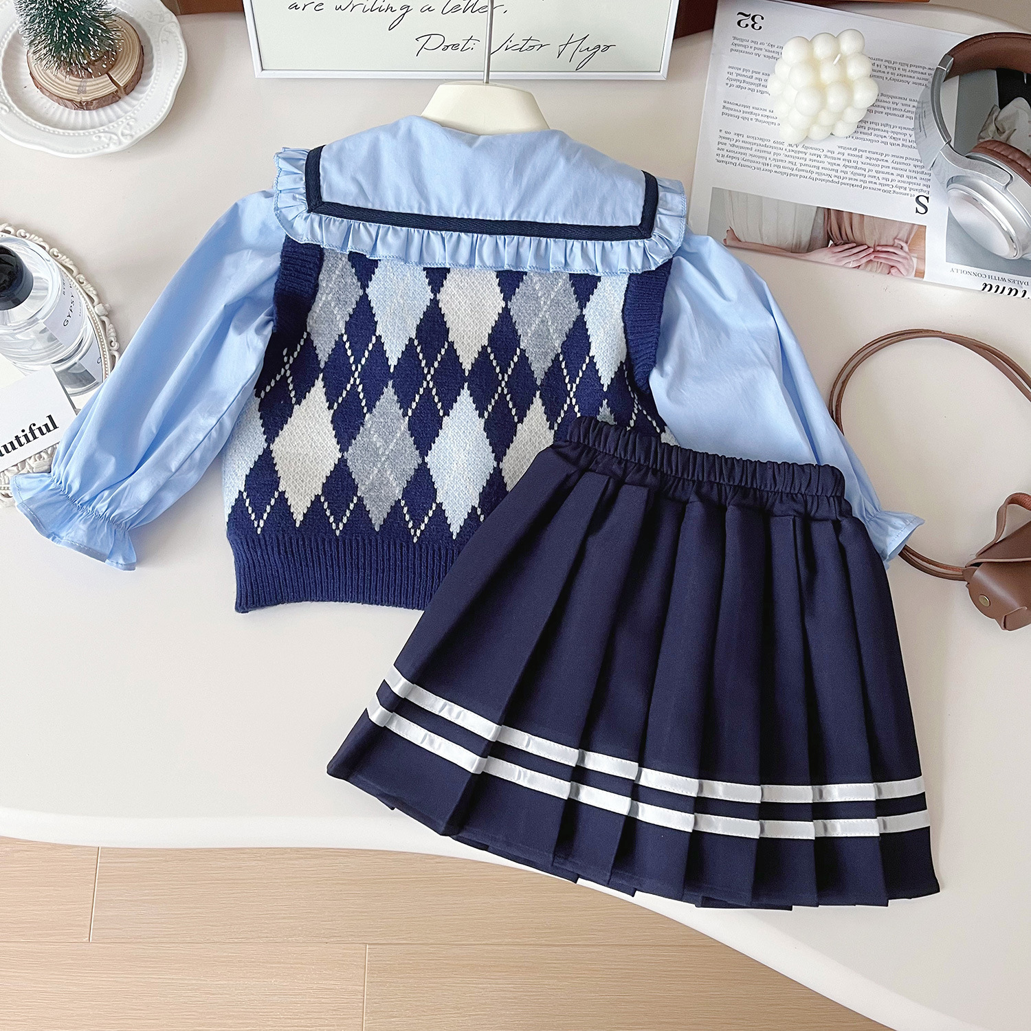 2024 년 가을 새 소녀 토끼 경찰관 JK 제복 세트 어린이 니트 베일 스커트 세트