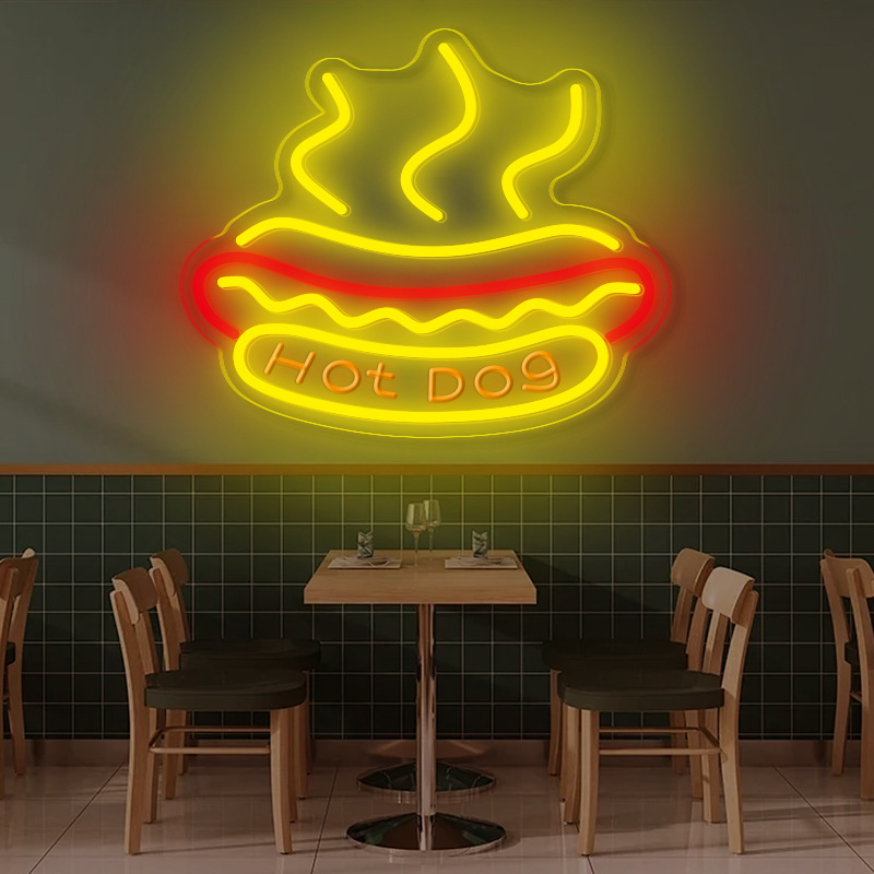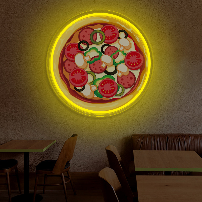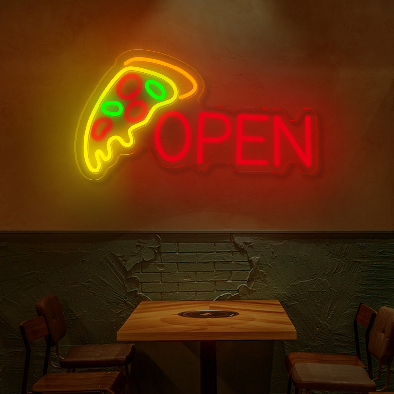 아마존 피자 버거 네온 사인 매장 장식 로고 라이트 사인 빛나는 단어 분위기 레이아웃 아크릴 라이트