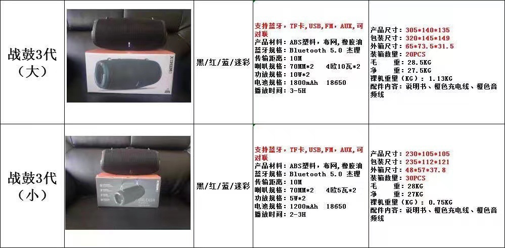 국경 간 XTREME3 전쟁 드럼 3 세대 무선 블루투스 스피커 휴대용 야외 미니 서브 우퍼 홈 데스크톱 오디오