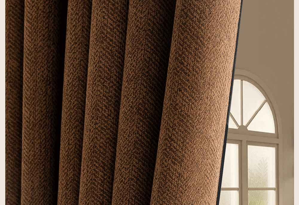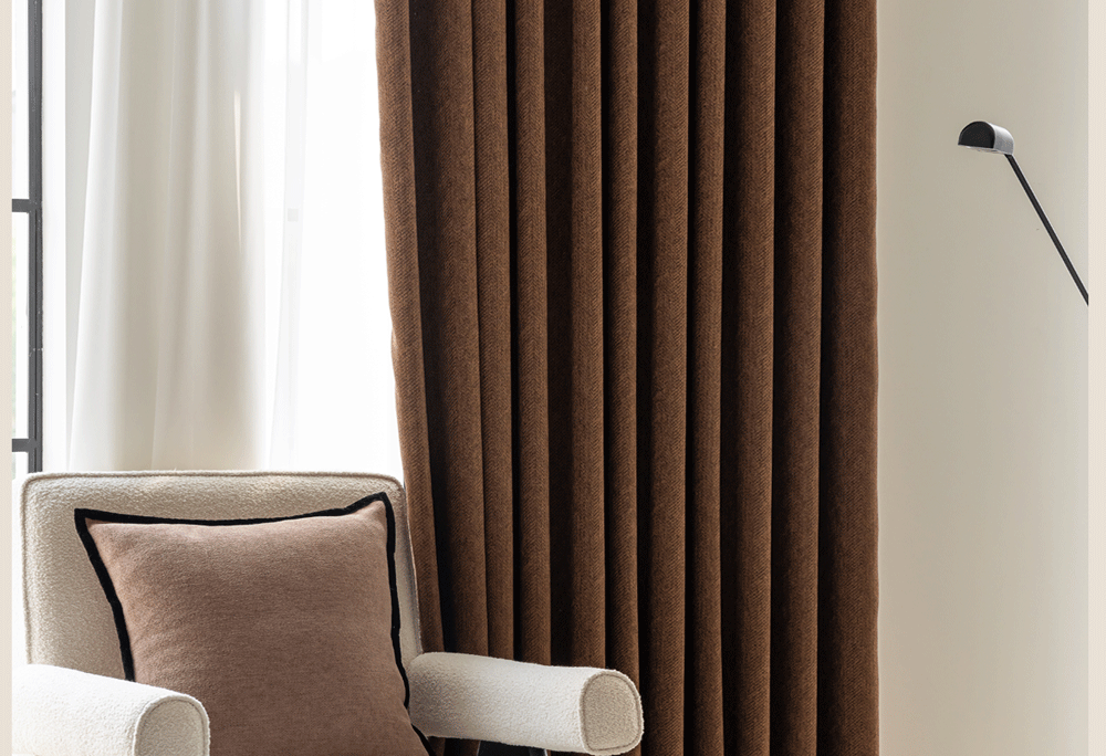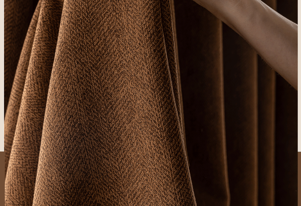 Tsukino 시리즈 중 고대 Maillard Cotton Linen Chenille Herringbone 커튼 고층 거실 침실