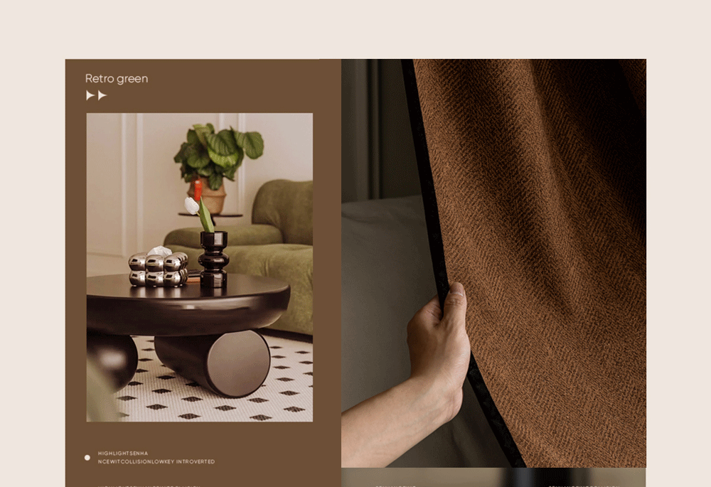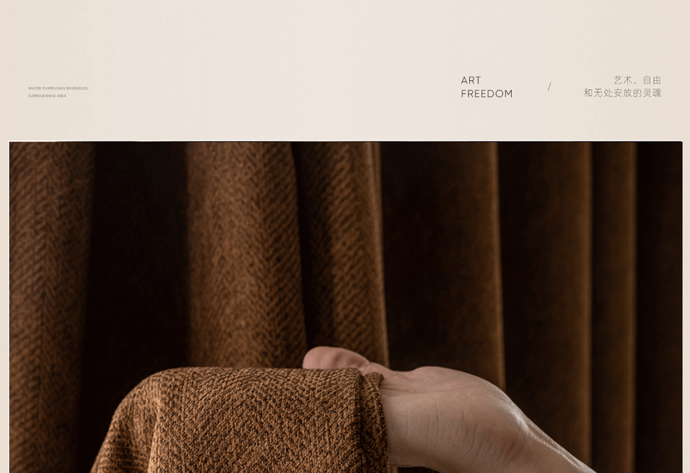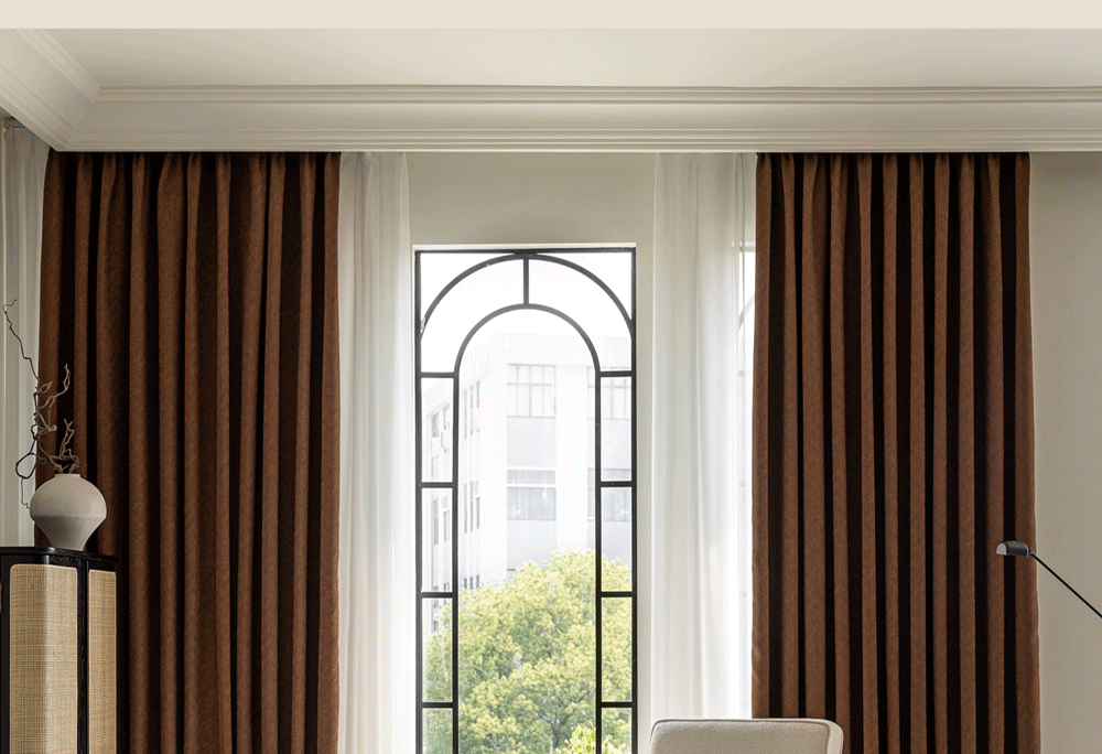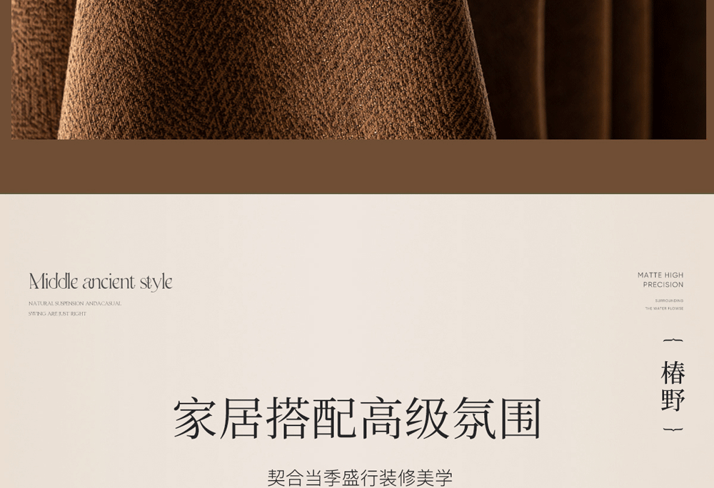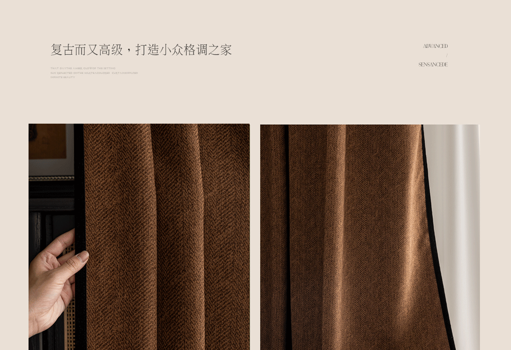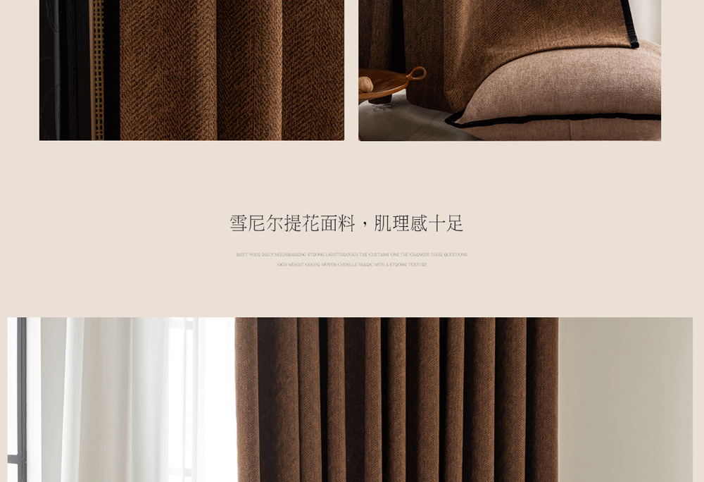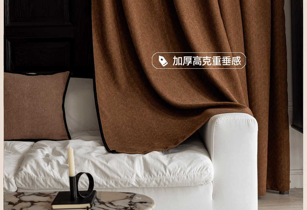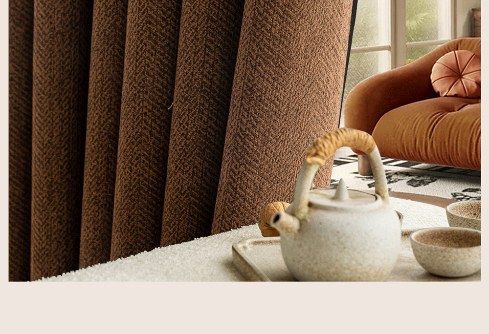 Tsukino 시리즈 중 고대 Maillard Cotton Linen Chenille Herringbone 커튼 고층 거실 침실스토어 가기