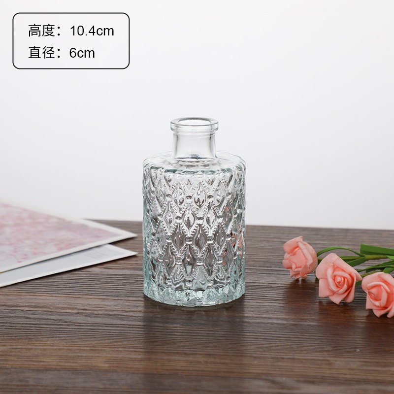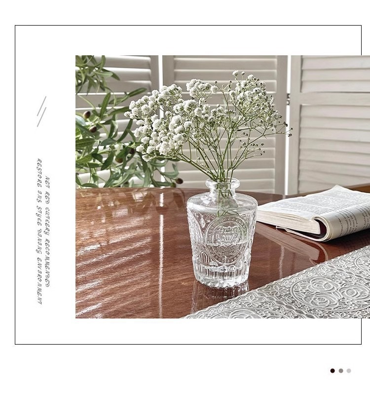 프랑스 스타일 빈티지 양각 유리 미니 작은 꽃병 스타일 투명 수경 꽃 꽃병 데스크탑 장식 장식품