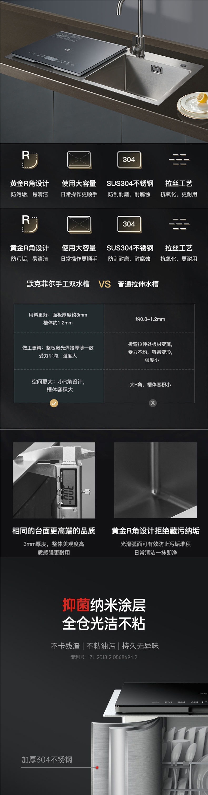 Merkfel (MKFR) 싱크 식기 세척기 완전 자동 가정용 단일 싱크 스마트 주방 청결없는 식기 세척기