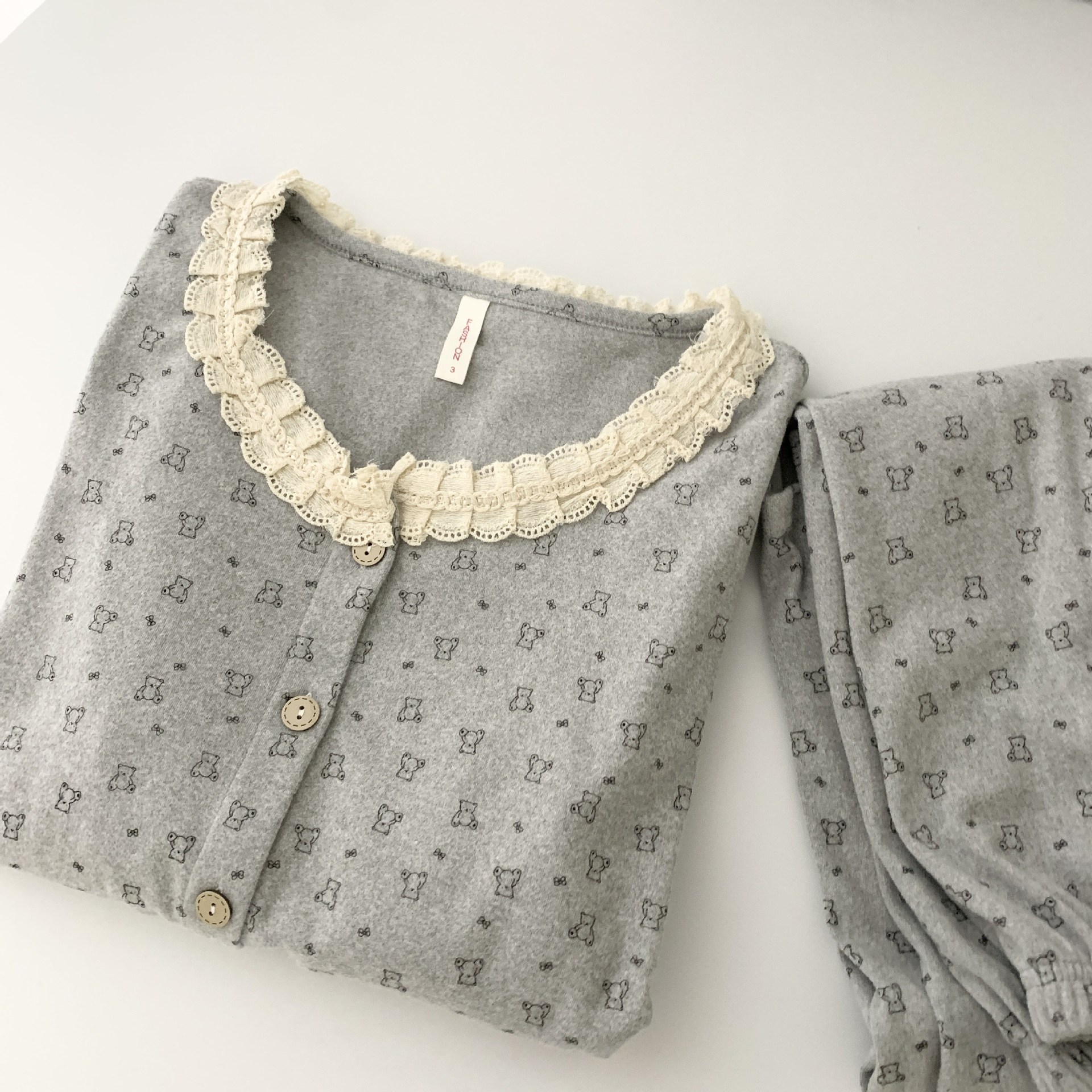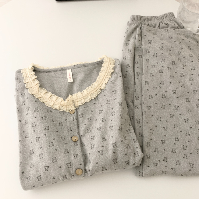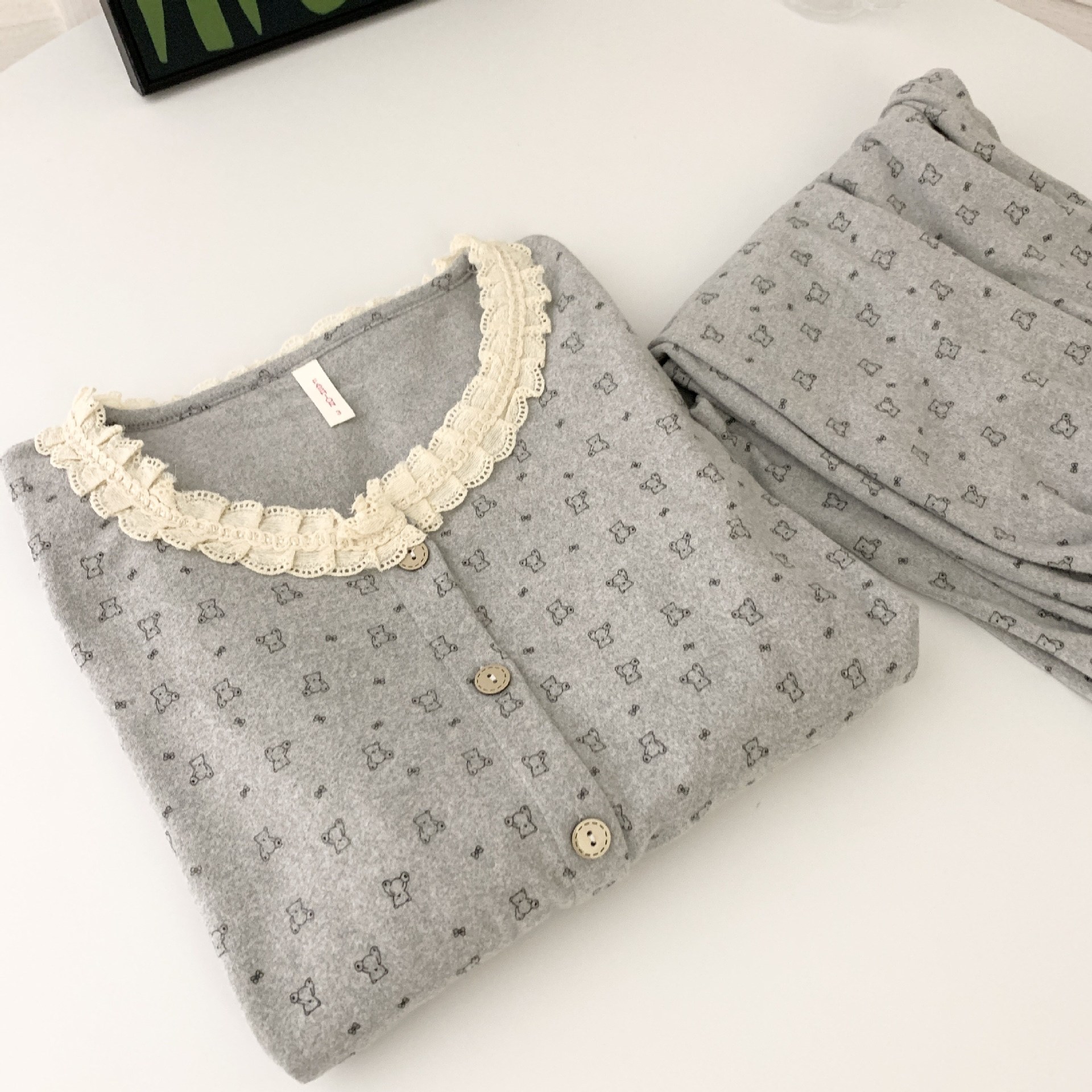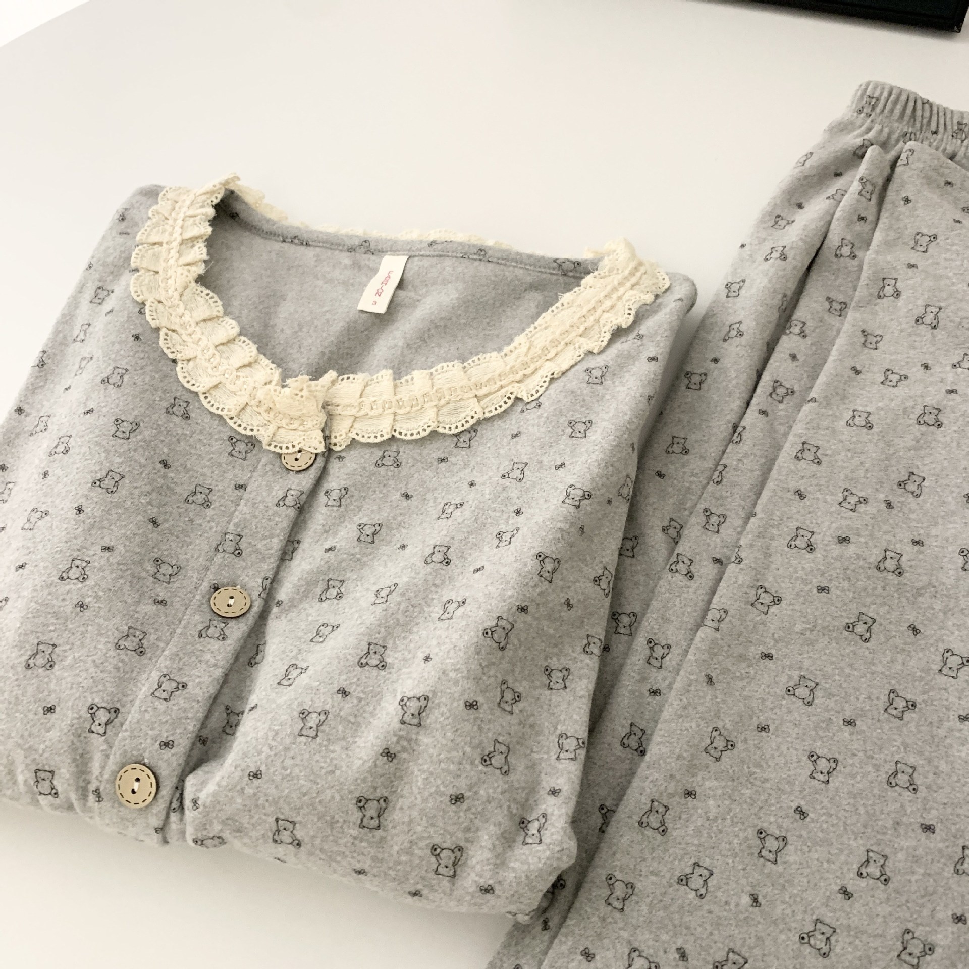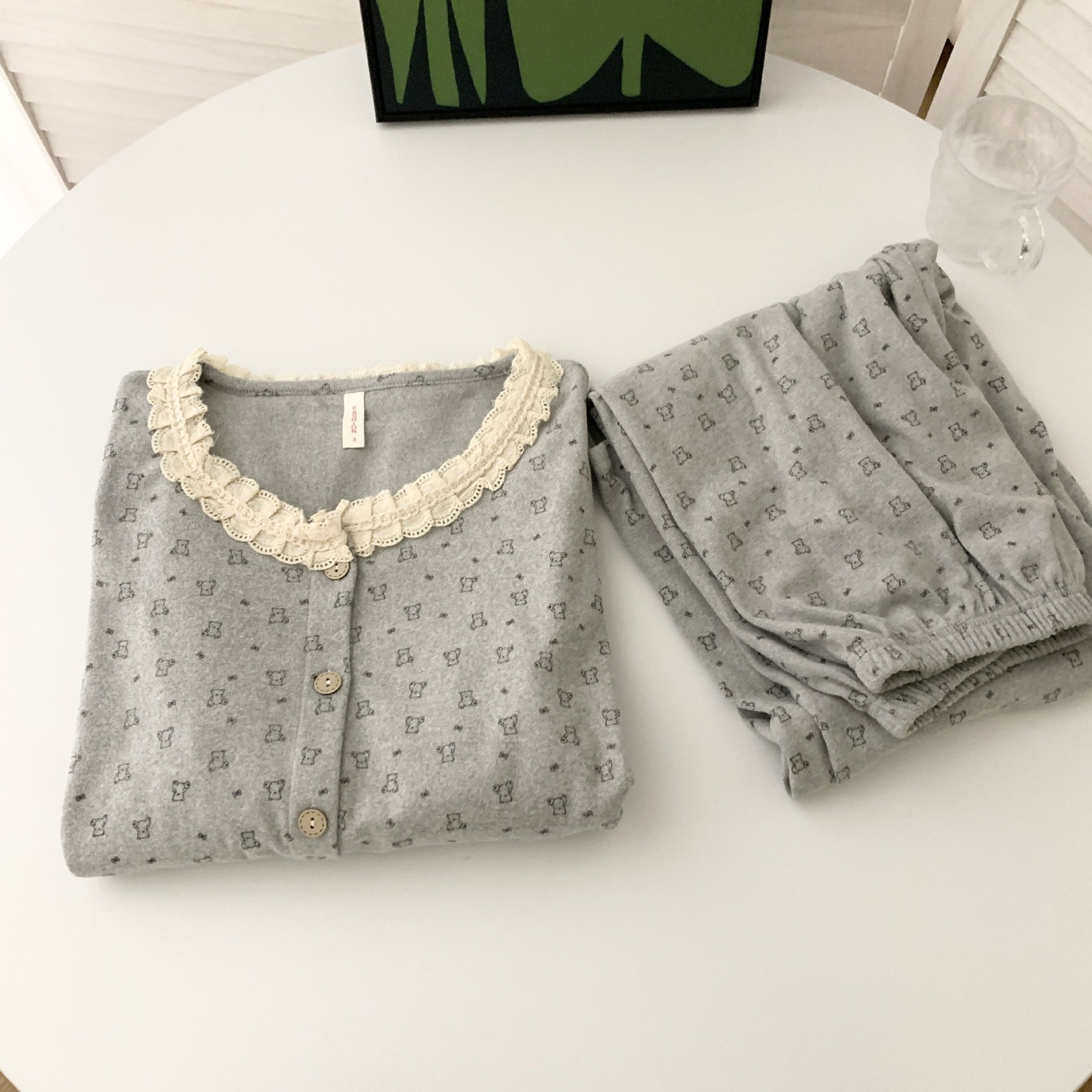 한국 홈웨어 세트, 독일산 벨벳 스타일 잠옷, 여성용, 외출 가능, 달콤한 신상 봄 가을 곰돌이 스타일스토어 가기