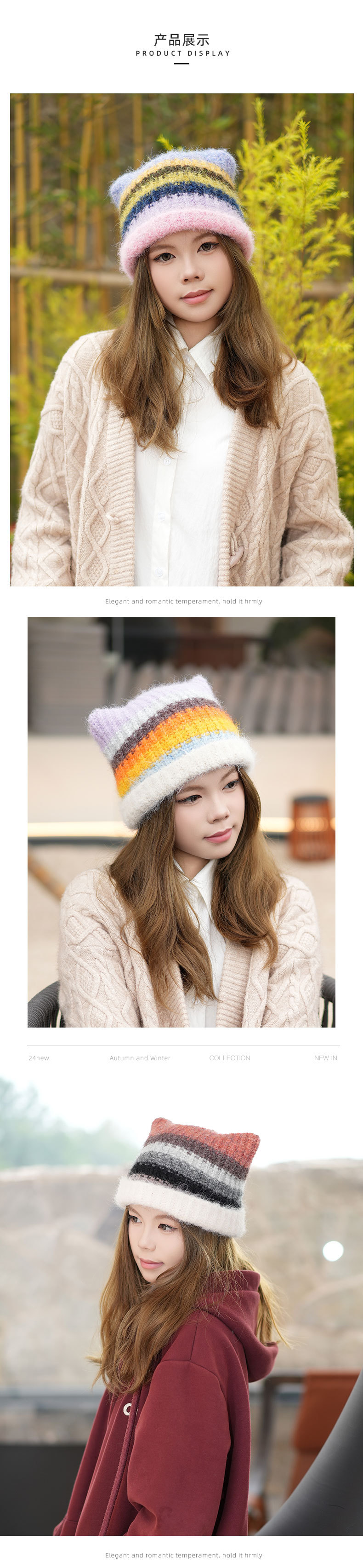 컬러 레트로 콘트라스트 컬러 니트 봉제 분지 모자 가을과 겨울 따뜻한 귀 보호 차가운 모자 일본 귀여운 고양이 귀 모자스토어 가기