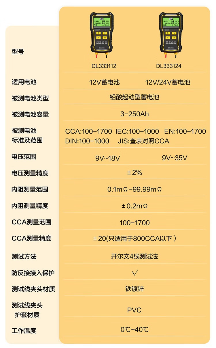 델리 DL333124 배터리 테스터 배터리 수명 12V 자동차 배터리 테스트 기기