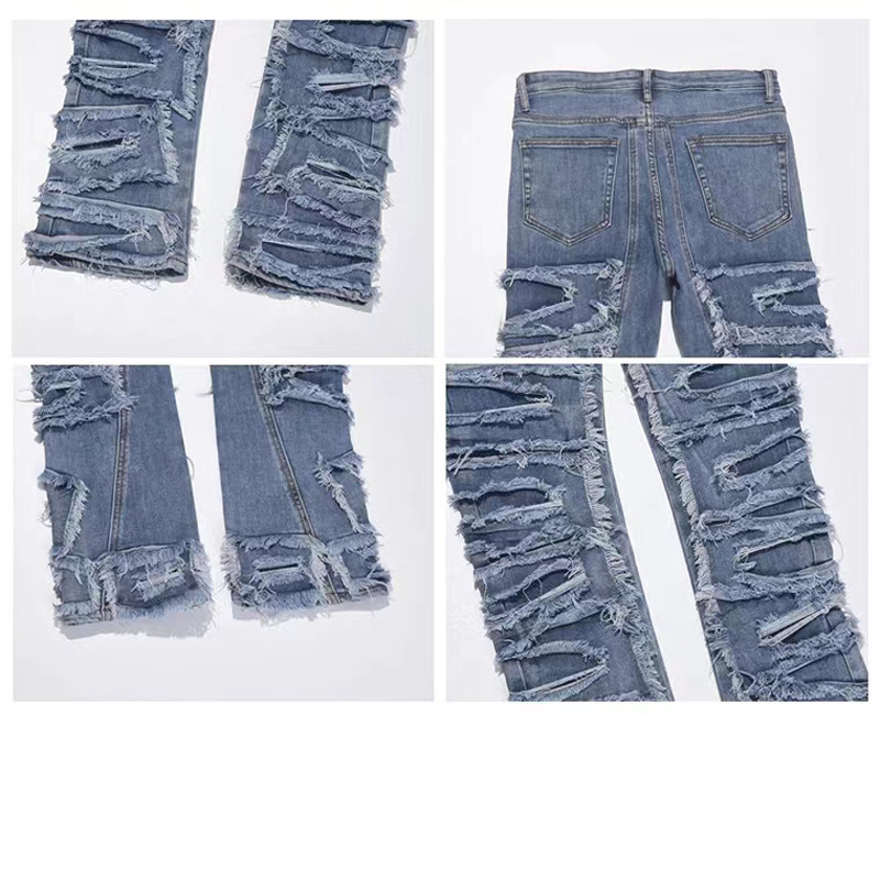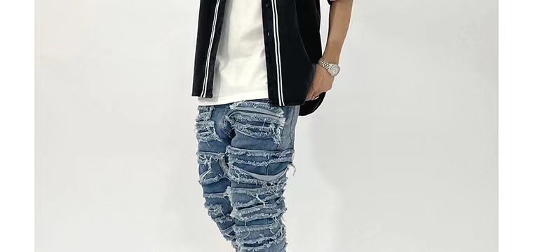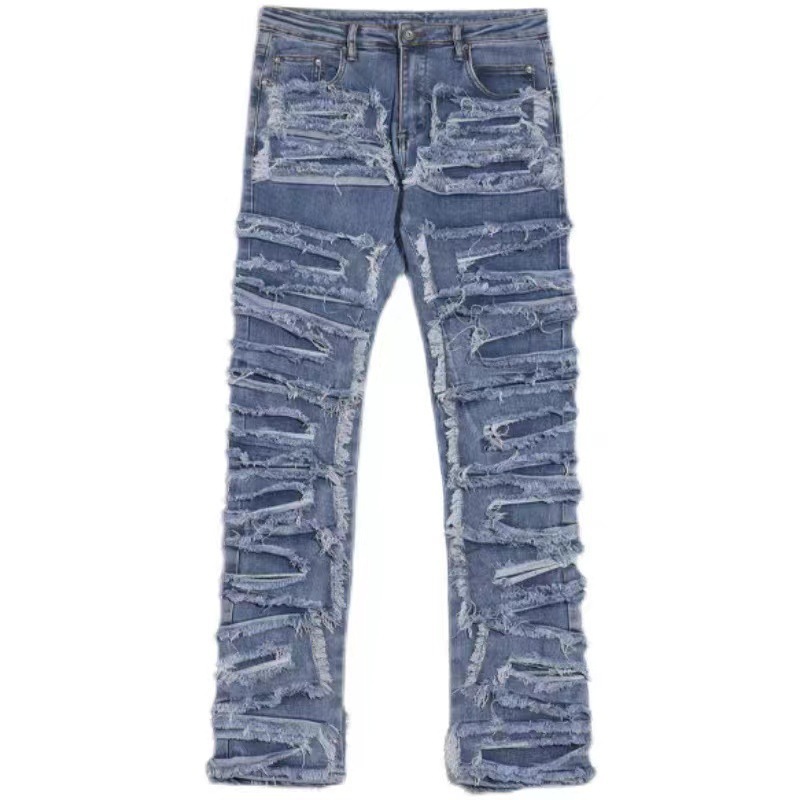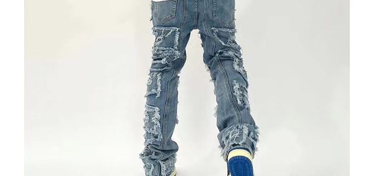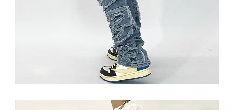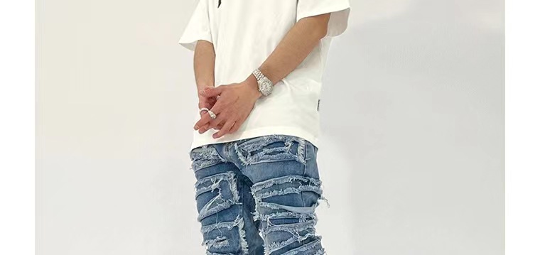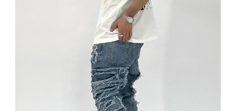 欧美男装高街ins水洗新款美式牛仔裤男做旧修身显瘦直筒长裤