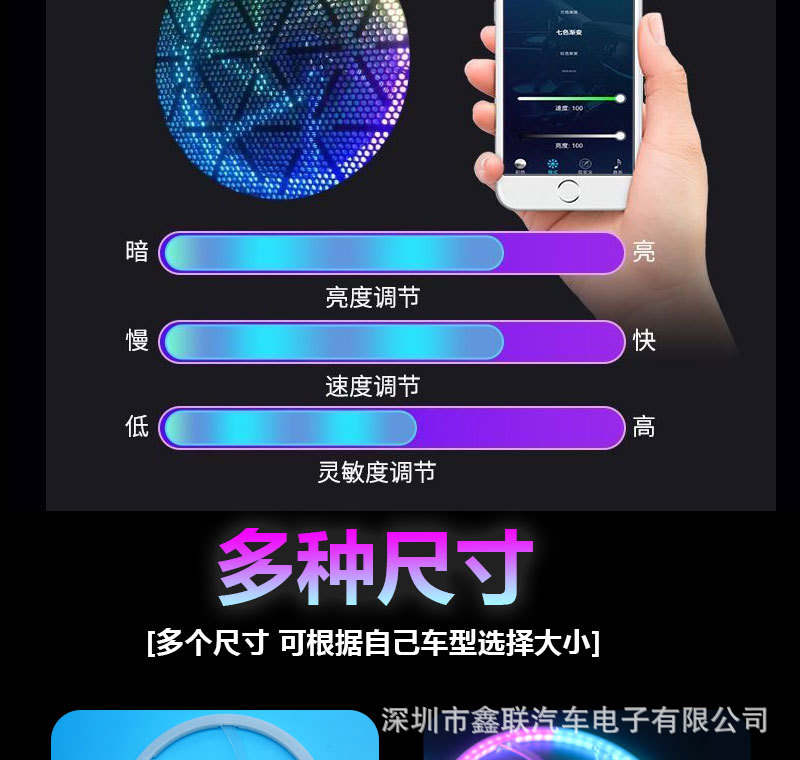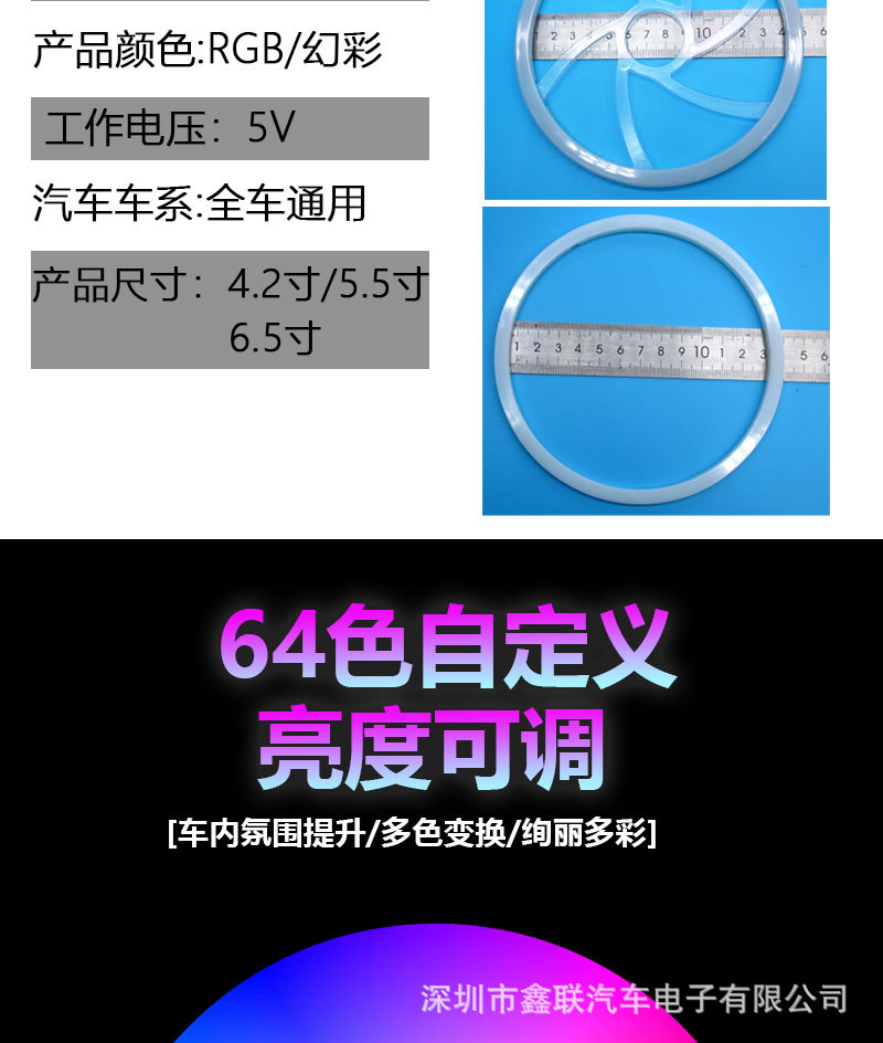 자동차 아크릴 LED 분위기등 차량 개조 5V 다채로운 액세서리 다채로운 자동차 스피커 링스토어 가기