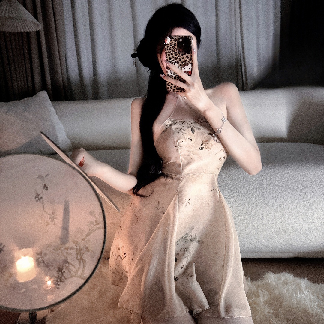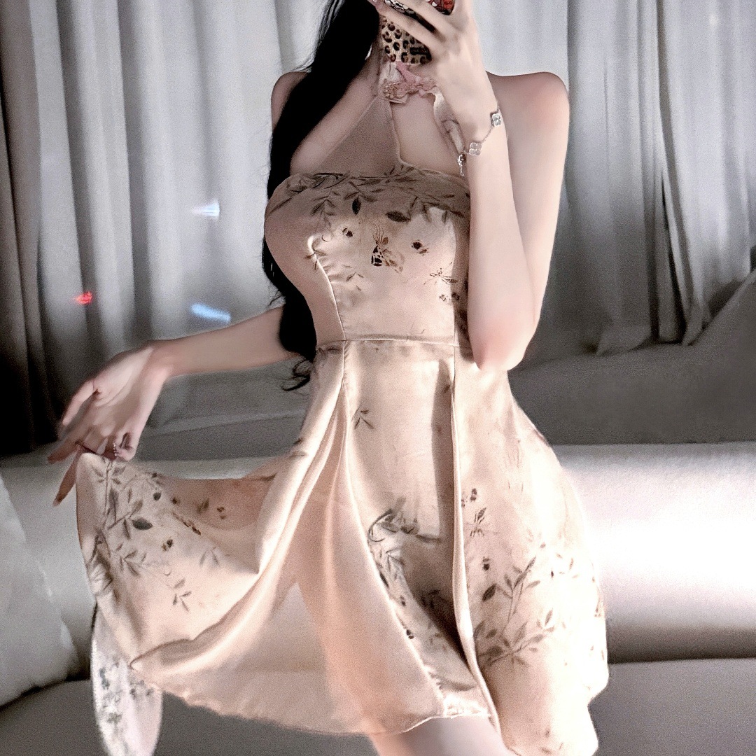 감정 속옷 새 중국 순수 욕망 인쇄 알몸 뒤 골동품 끈 청삼 유혹 원피스
