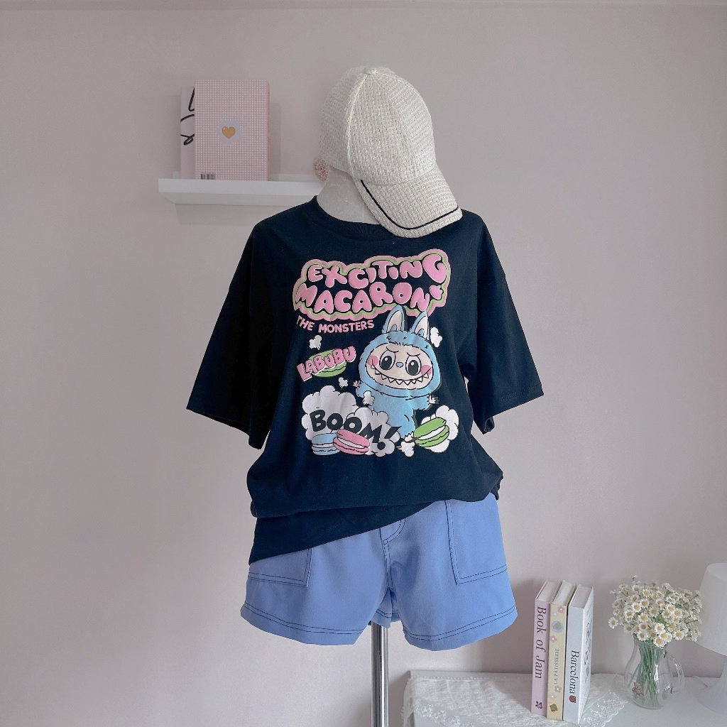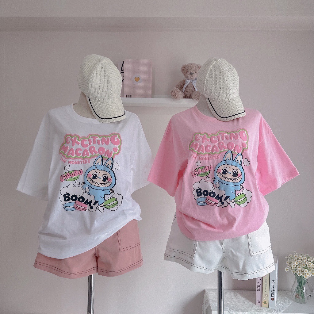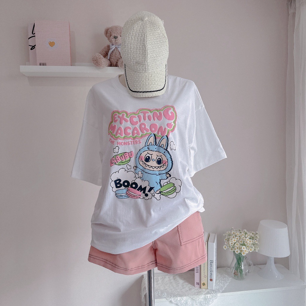 여름 새 소녀 인쇄 반팔 캐주얼 유행 연령 감소 소녀 티셔츠 귀여운 느슨한 올 매치 카드 탑스토어 가기