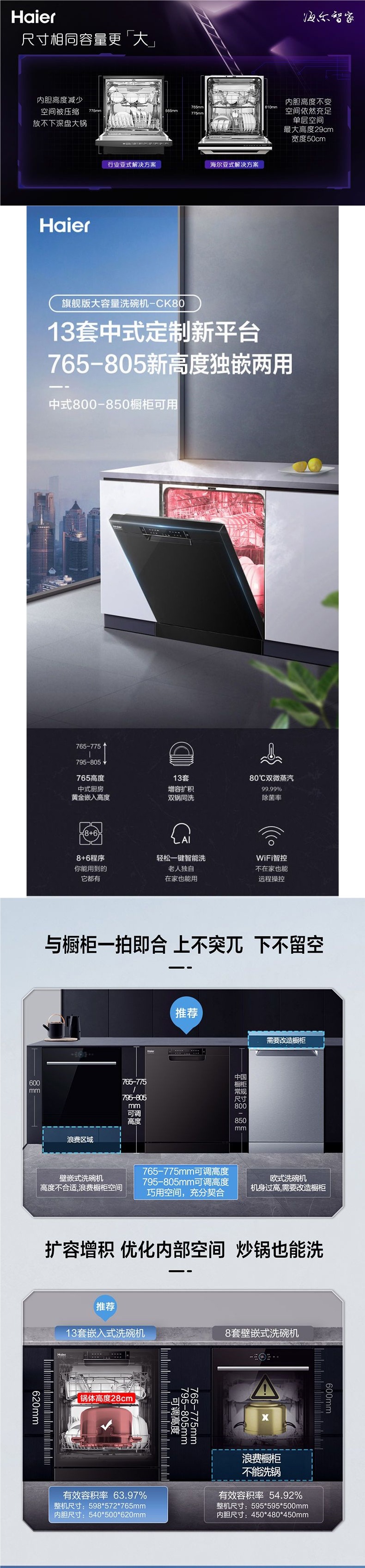 하이얼 13 세트의 식기 세척기 내장 마이크로 증기 자동 그릇 브러시 기계 지능형 IOT EYW13028BKSNU1스토어 가기