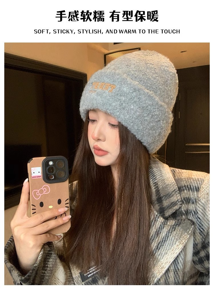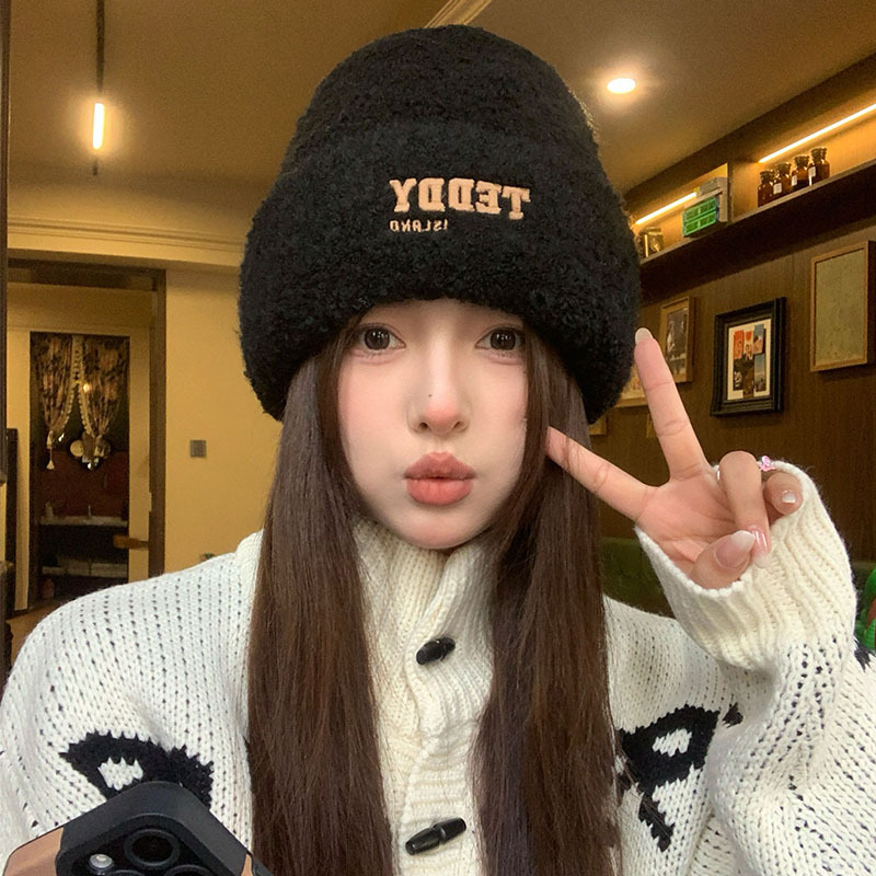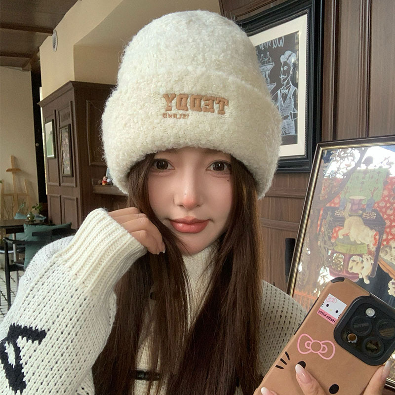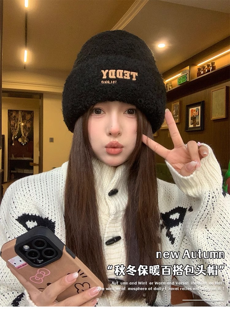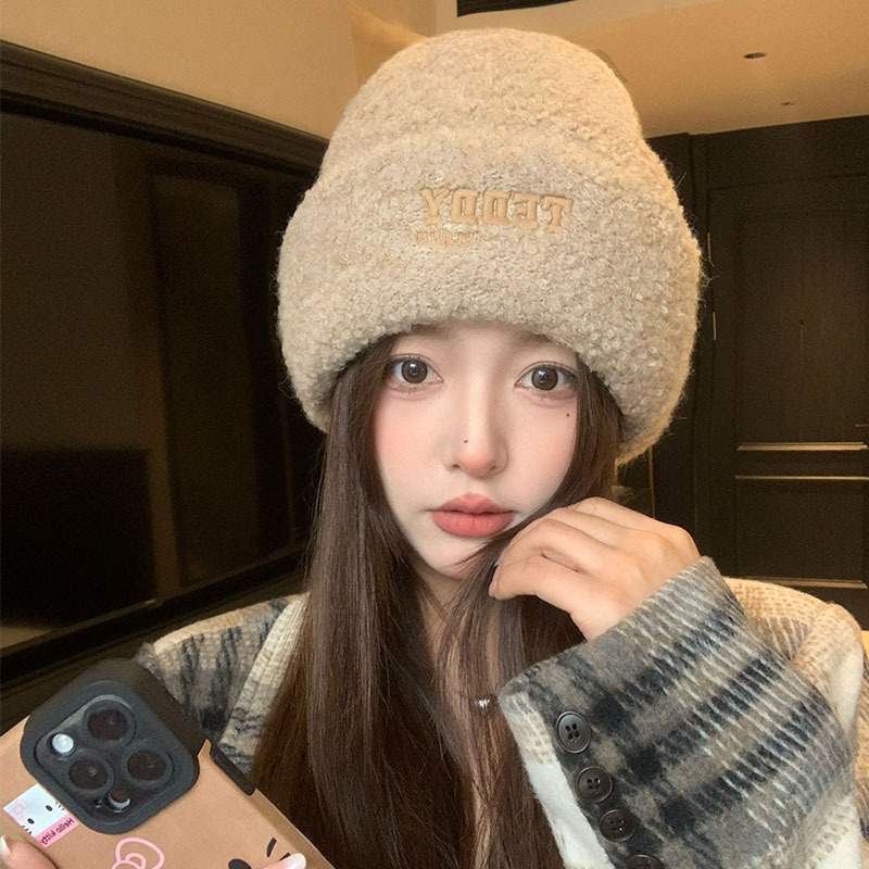 새로운 양모 모자 여성의 가을과 겨울 차가운 모자 큰 머리 와이 봉제 모자 여성용 헤드 기어 귀 보호 모자 니트 모자 겨울스토어 가기